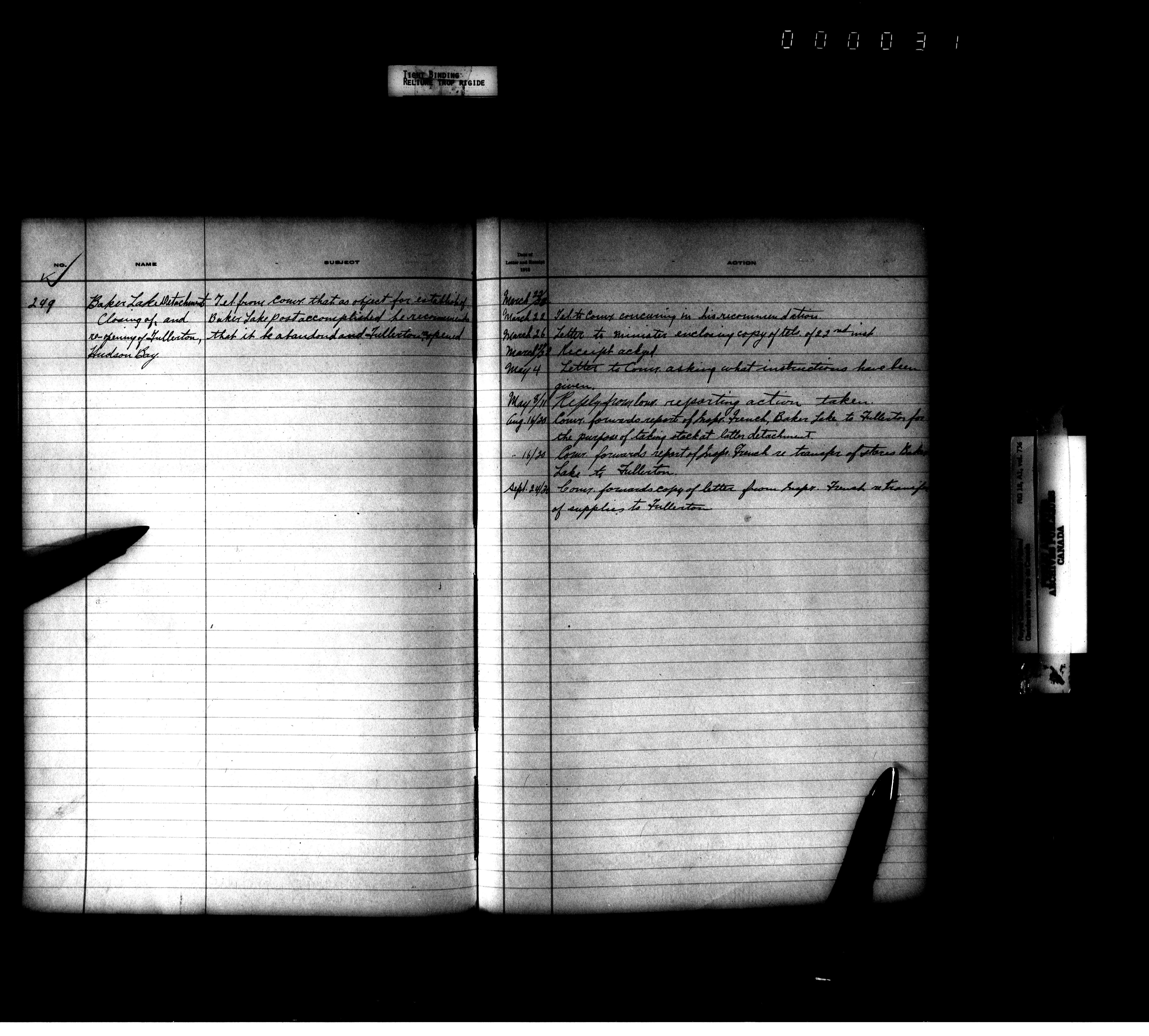 Royal Canadian Mounted Police, Office of the Comptroller, official correspondence : Indexes and registers - 4460