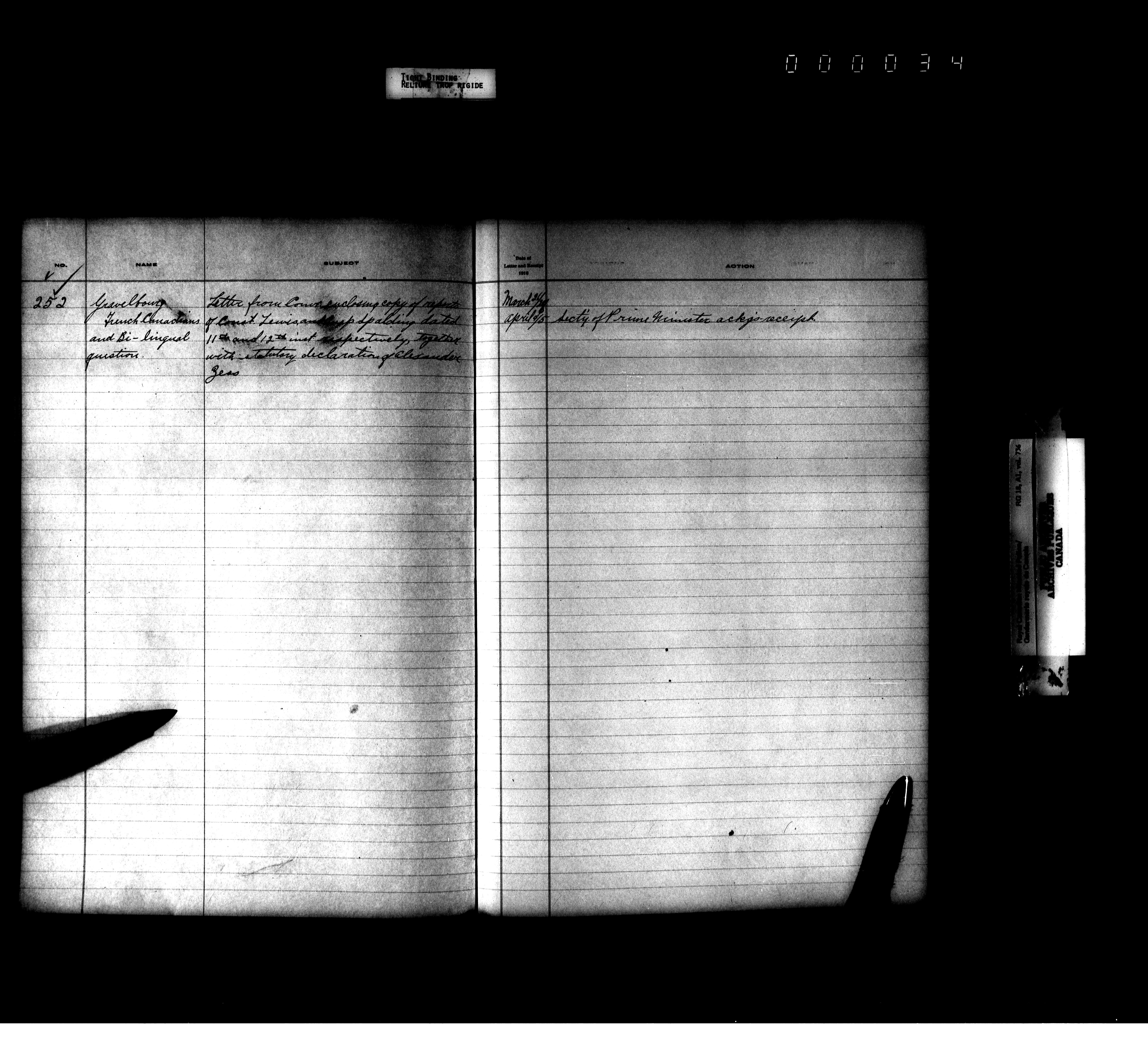 Royal Canadian Mounted Police, Office of the Comptroller, official correspondence : Indexes and registers - 4460
