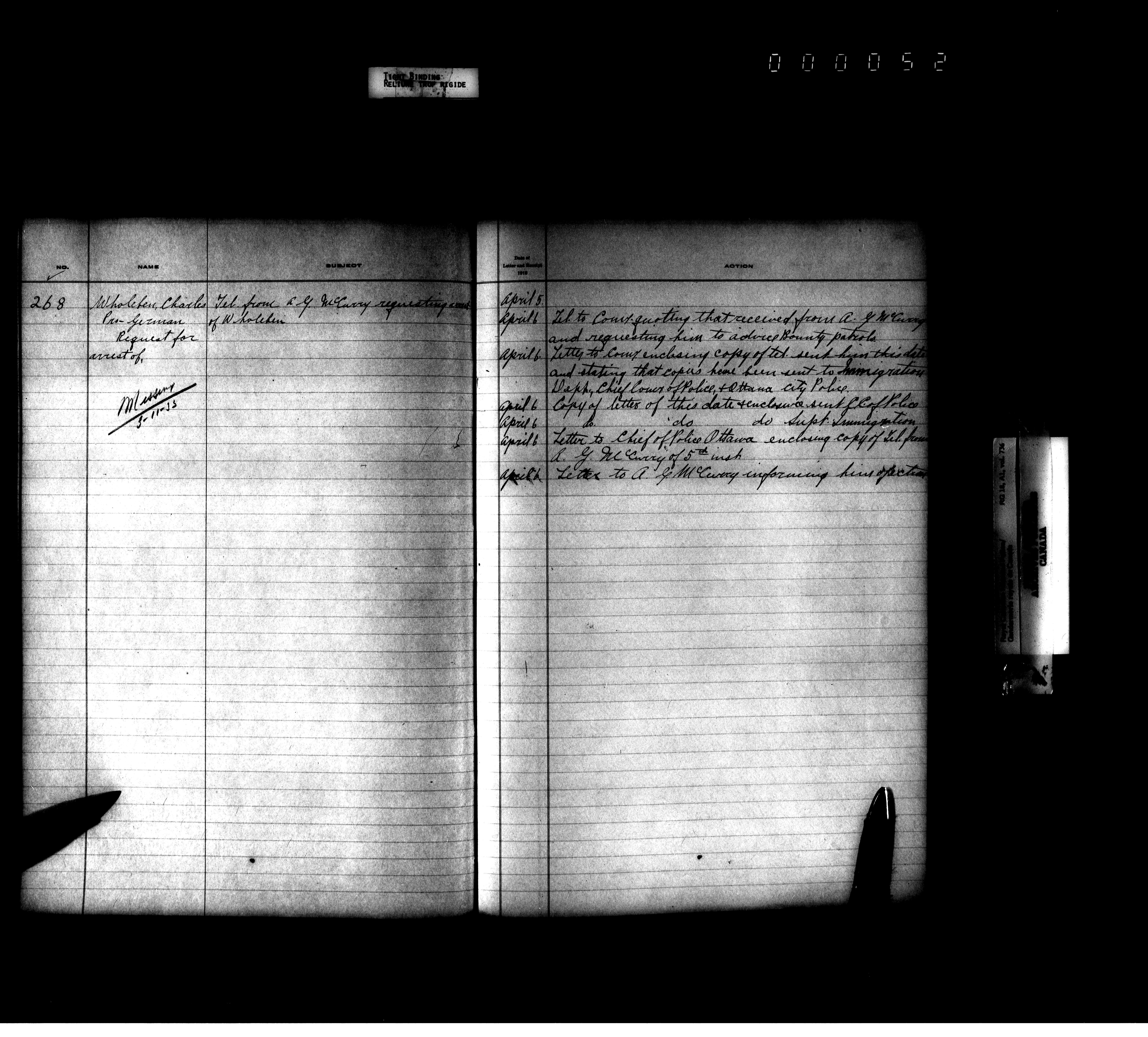 Royal Canadian Mounted Police, Office of the Comptroller, official correspondence : Indexes and registers - 4460