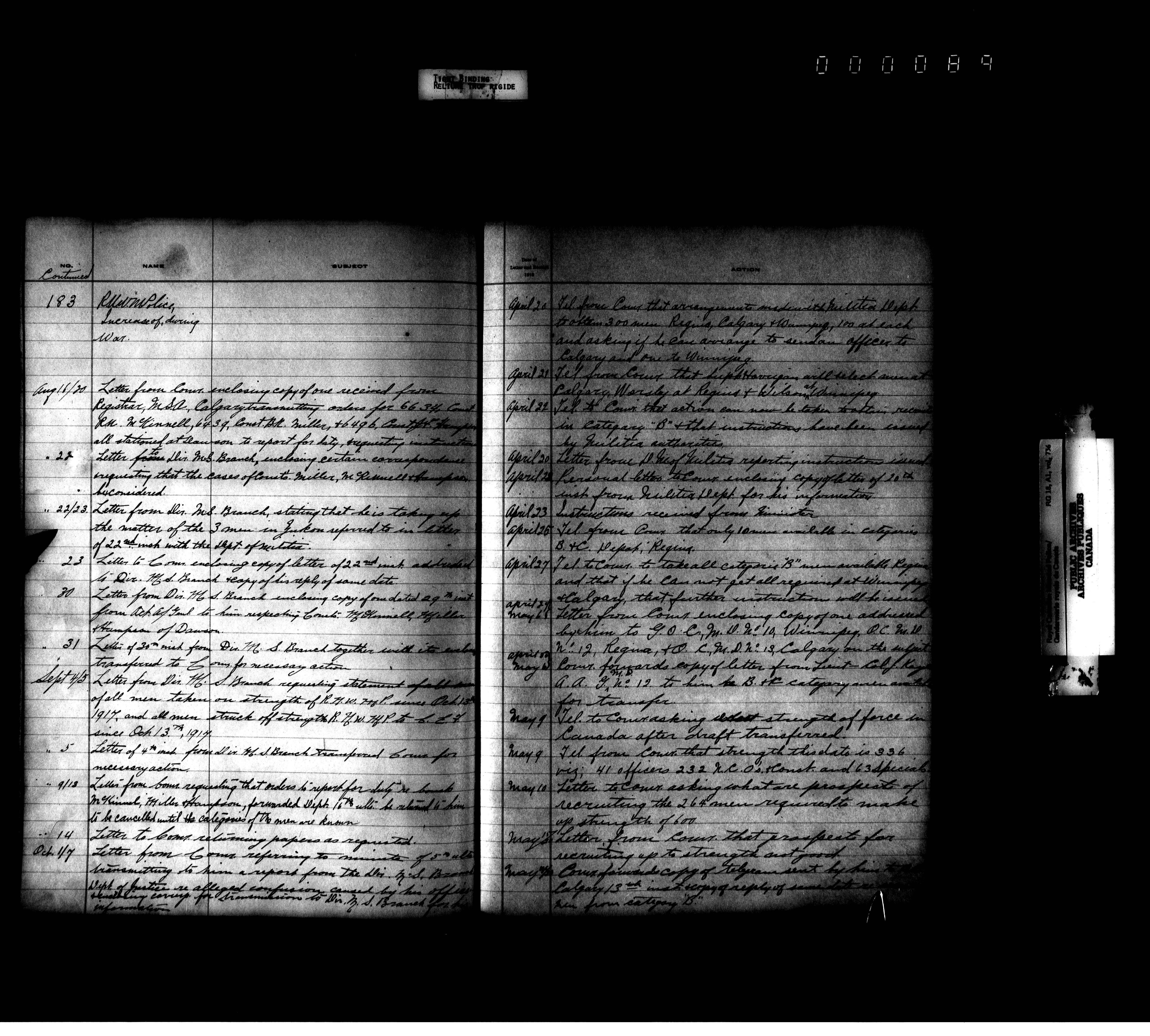 Royal Canadian Mounted Police, Office of the Comptroller, official correspondence : Indexes and registers - 4460