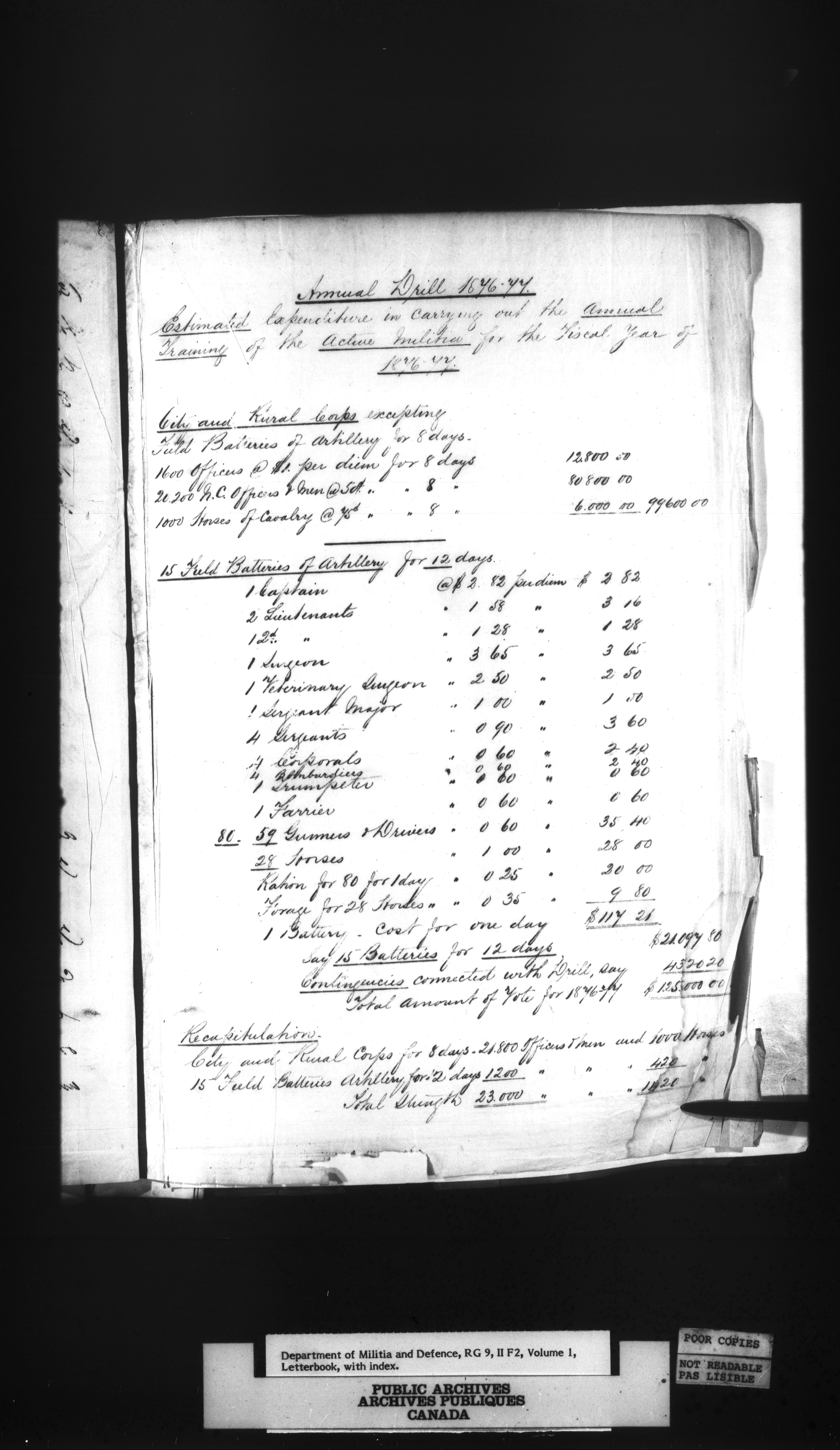 Militia and Defence : Accounts and Pay Branch, General accounts - 447