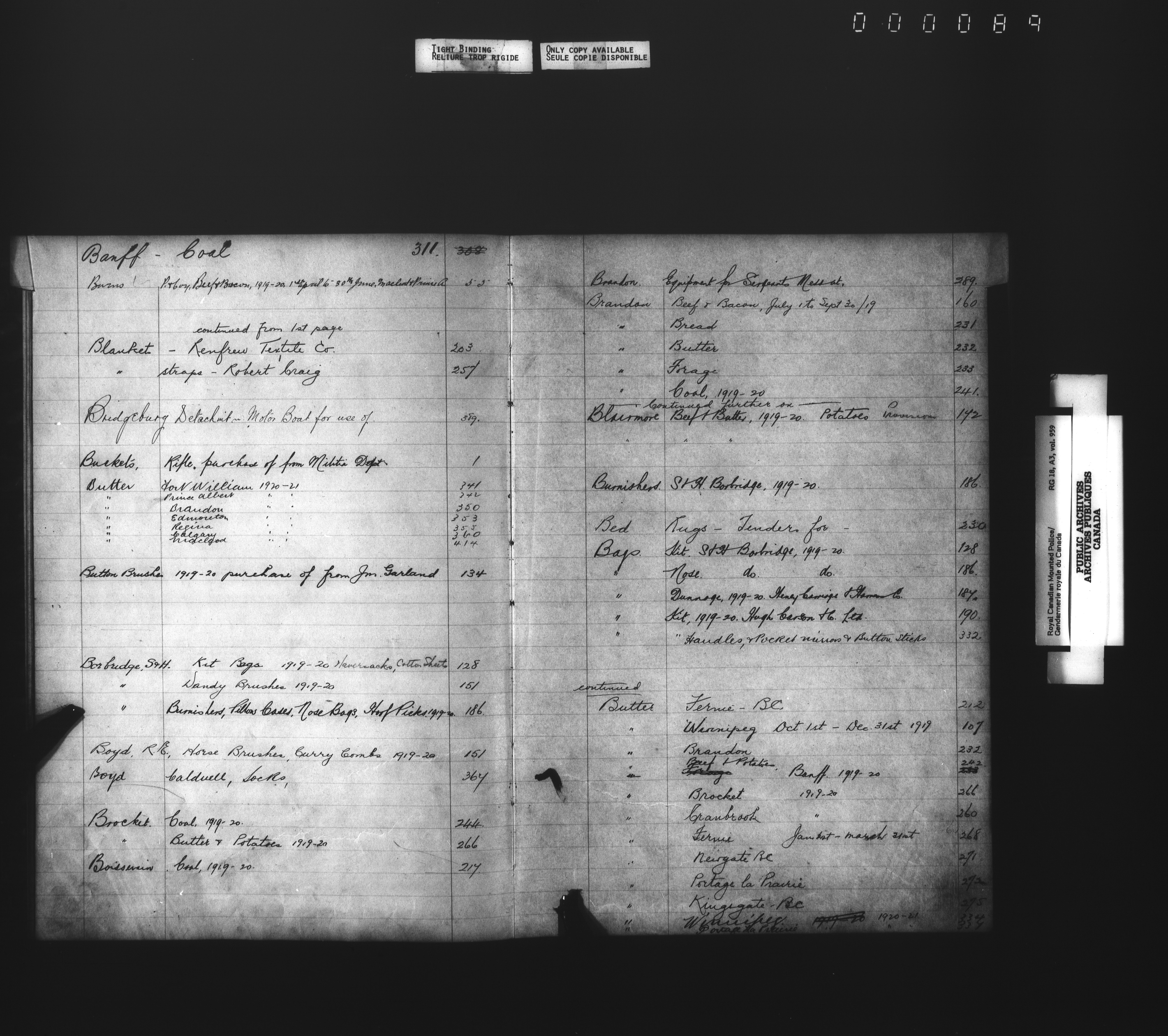 Royal Canadian Mounted Police, Office of the Comptroller : Supply indexes and registers