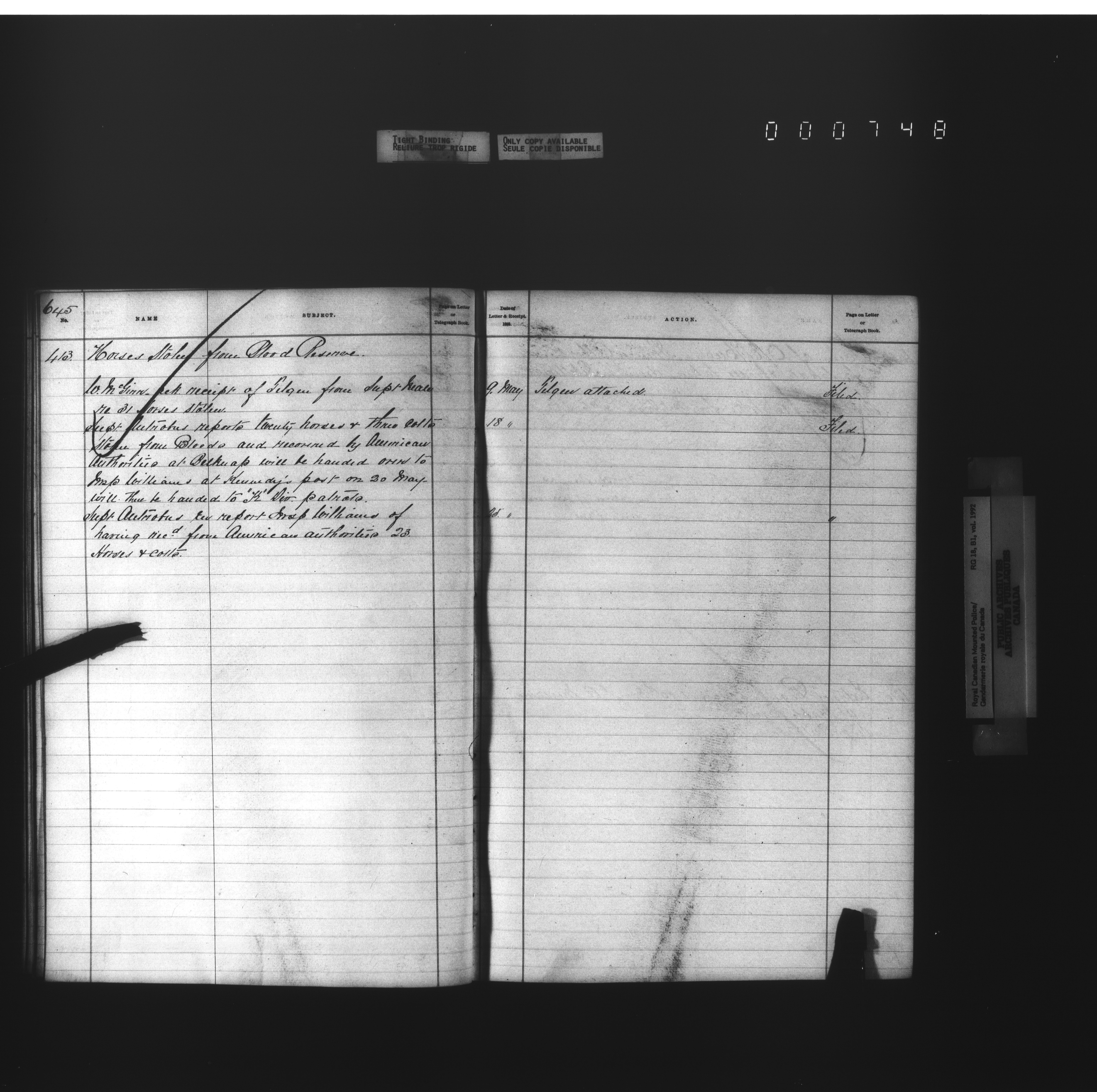 Royal Canadian Mounted Police, Office of the Commissioner: official correspondence: indexes and registers, 1876-1920 - 4476