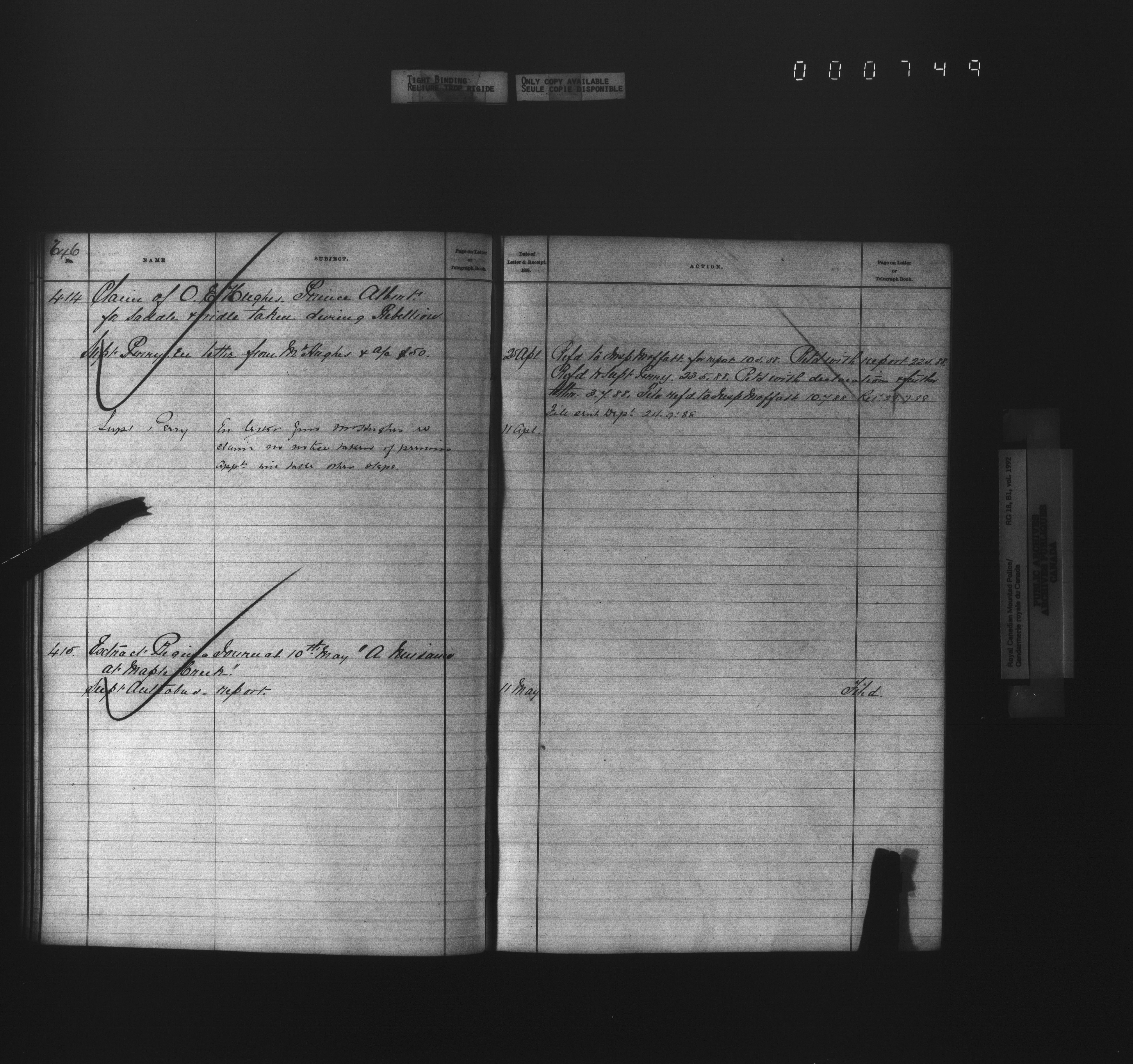 Royal Canadian Mounted Police, Office of the Commissioner: official correspondence: indexes and registers, 1876-1920 - 4476
