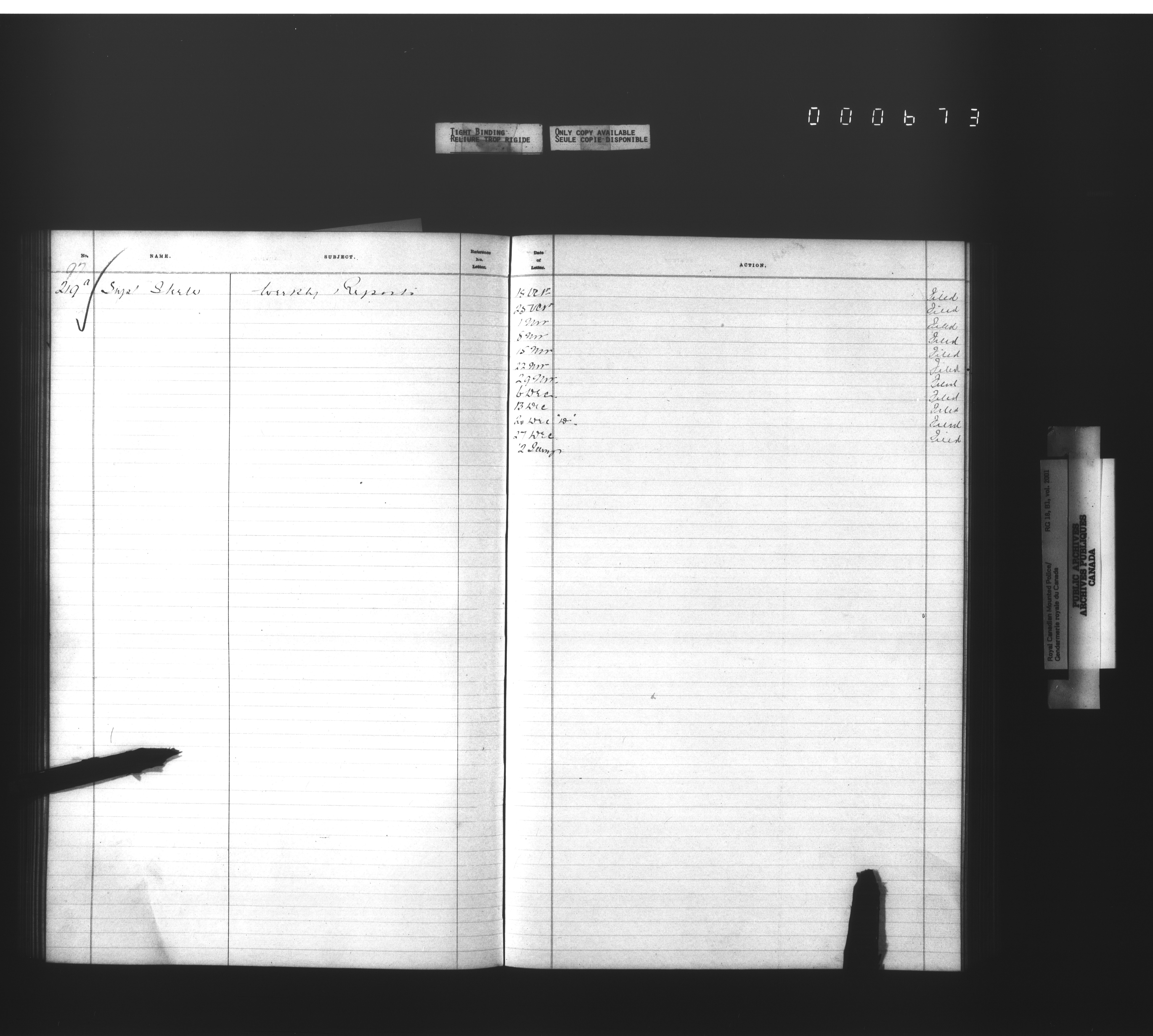 Royal Canadian Mounted Police, Office of the Commissioner: official correspondence: indexes and registers, 1876-1920 - 4478