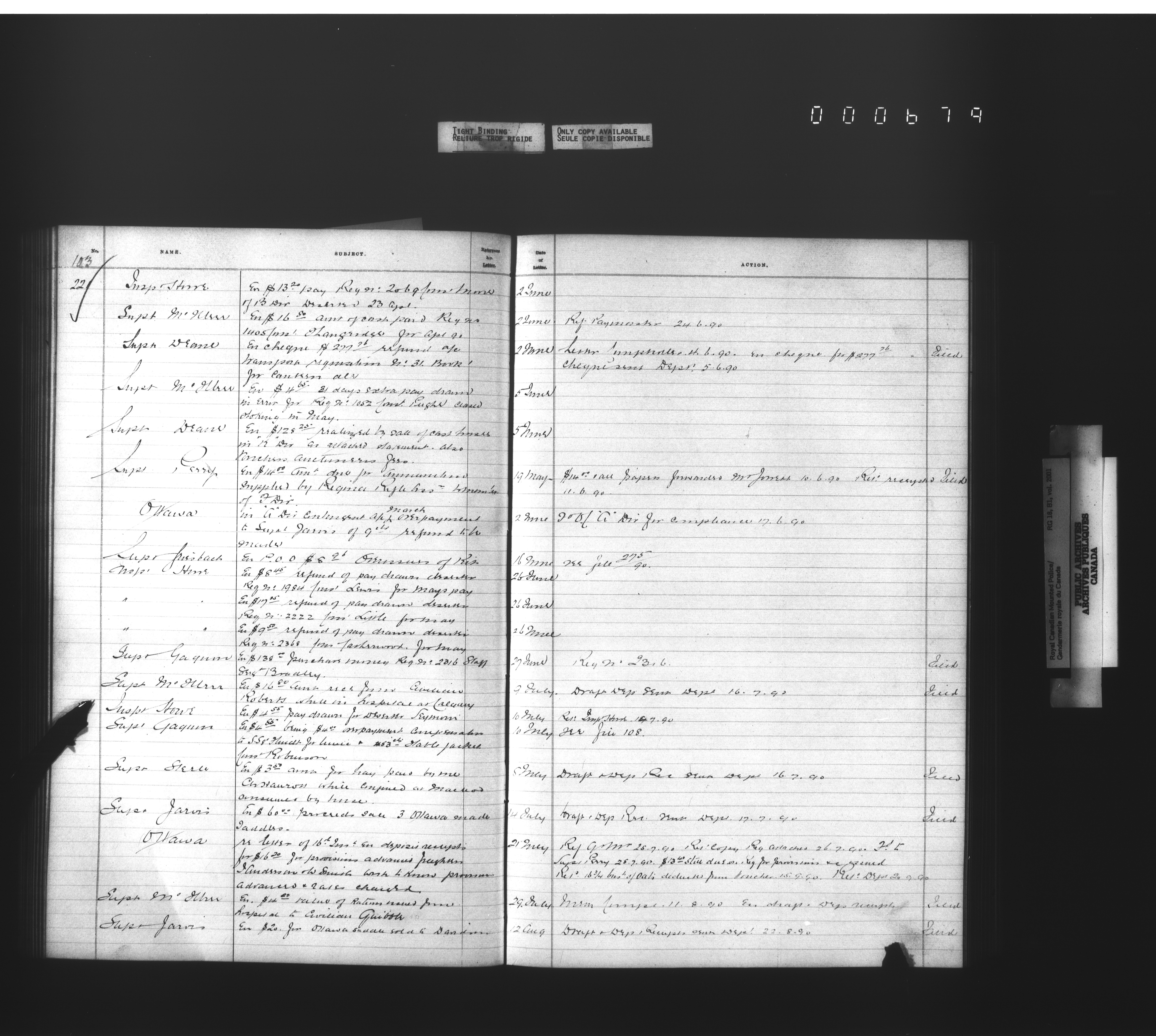 Royal Canadian Mounted Police, Office of the Commissioner: official correspondence: indexes and registers, 1876-1920 : T-4478