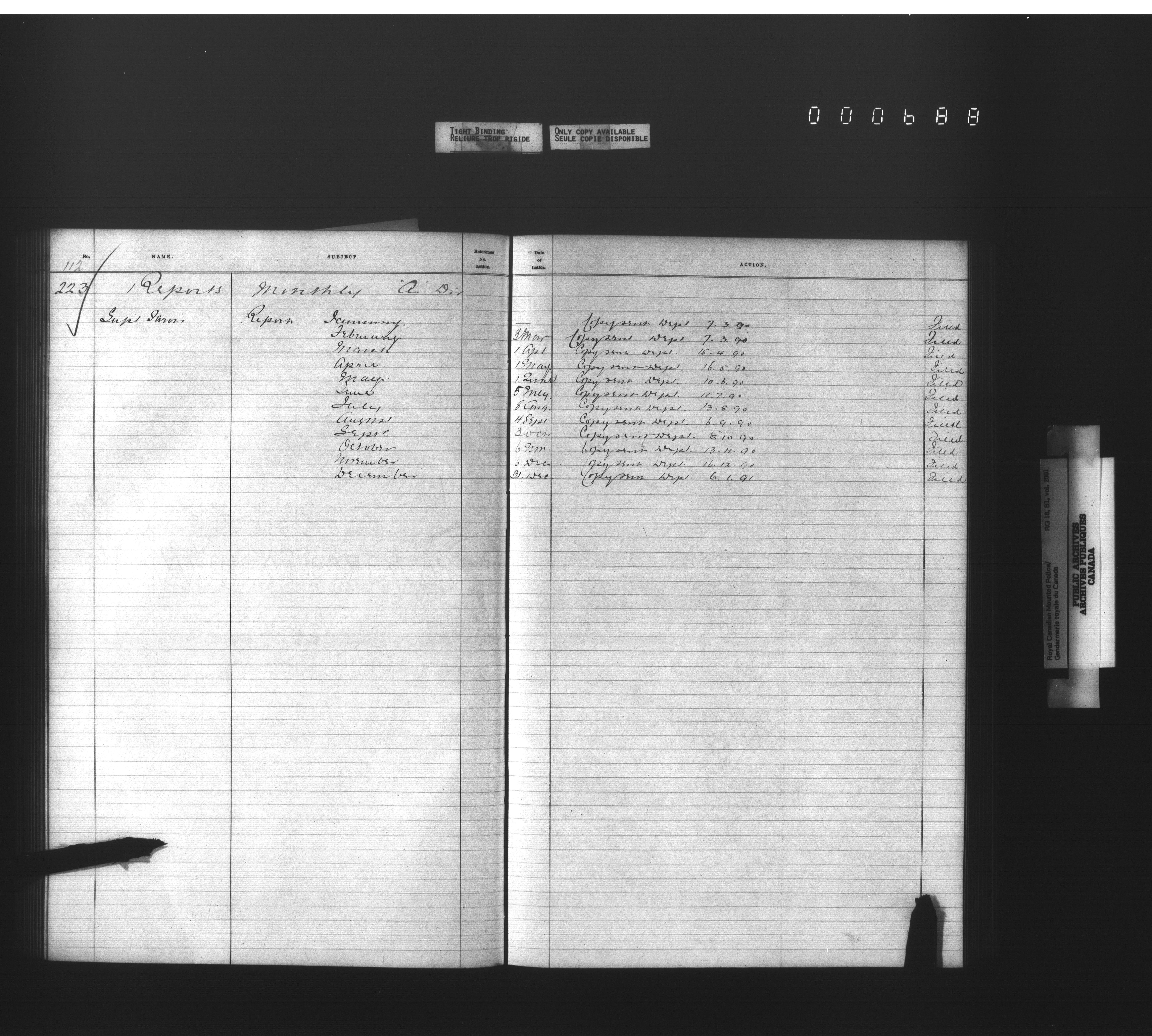 Royal Canadian Mounted Police, Office of the Commissioner: official correspondence: indexes and registers, 1876-1920 : T-4478
