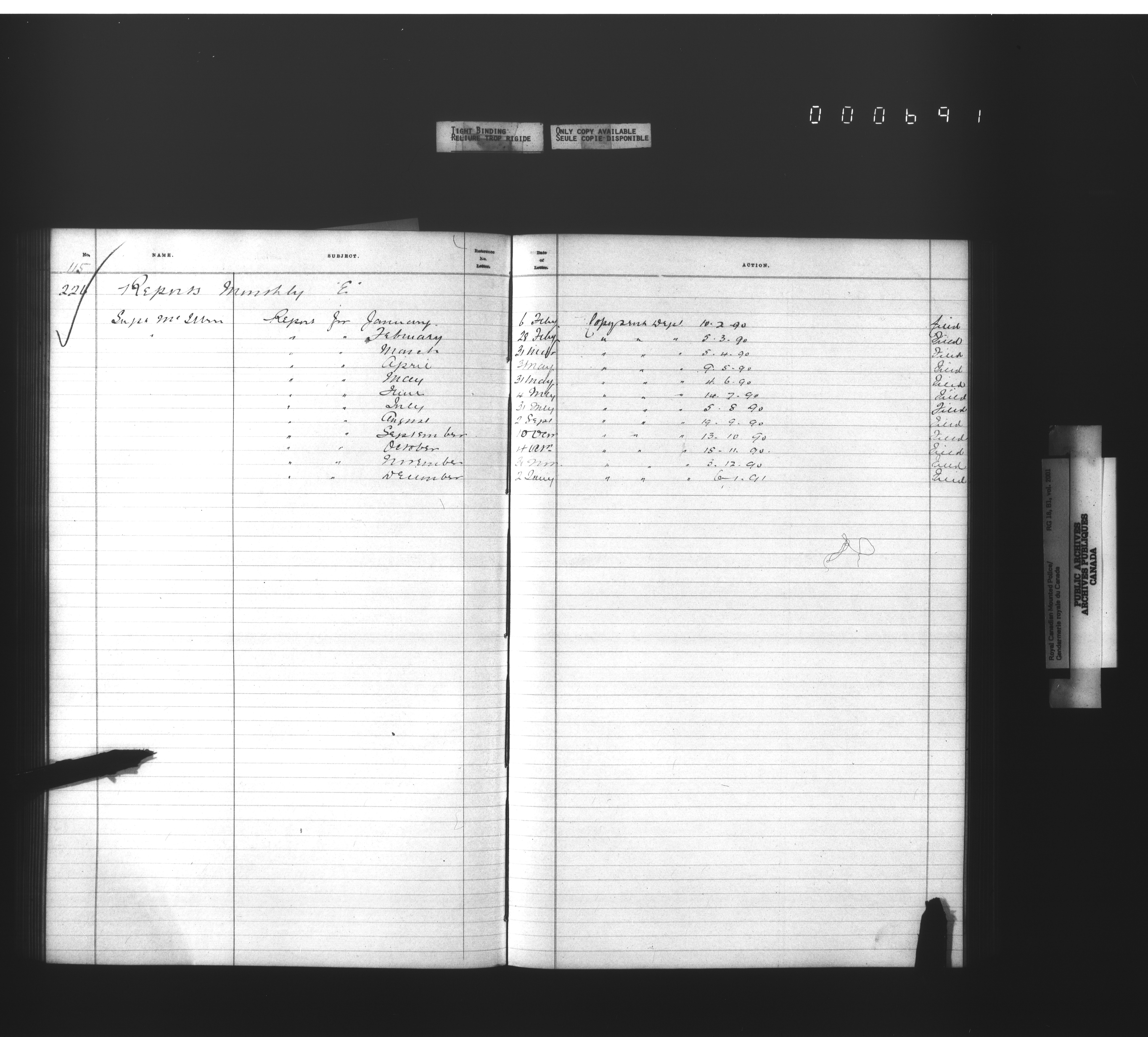 Royal Canadian Mounted Police, Office of the Commissioner: official correspondence: indexes and registers, 1876-1920 : T-4478