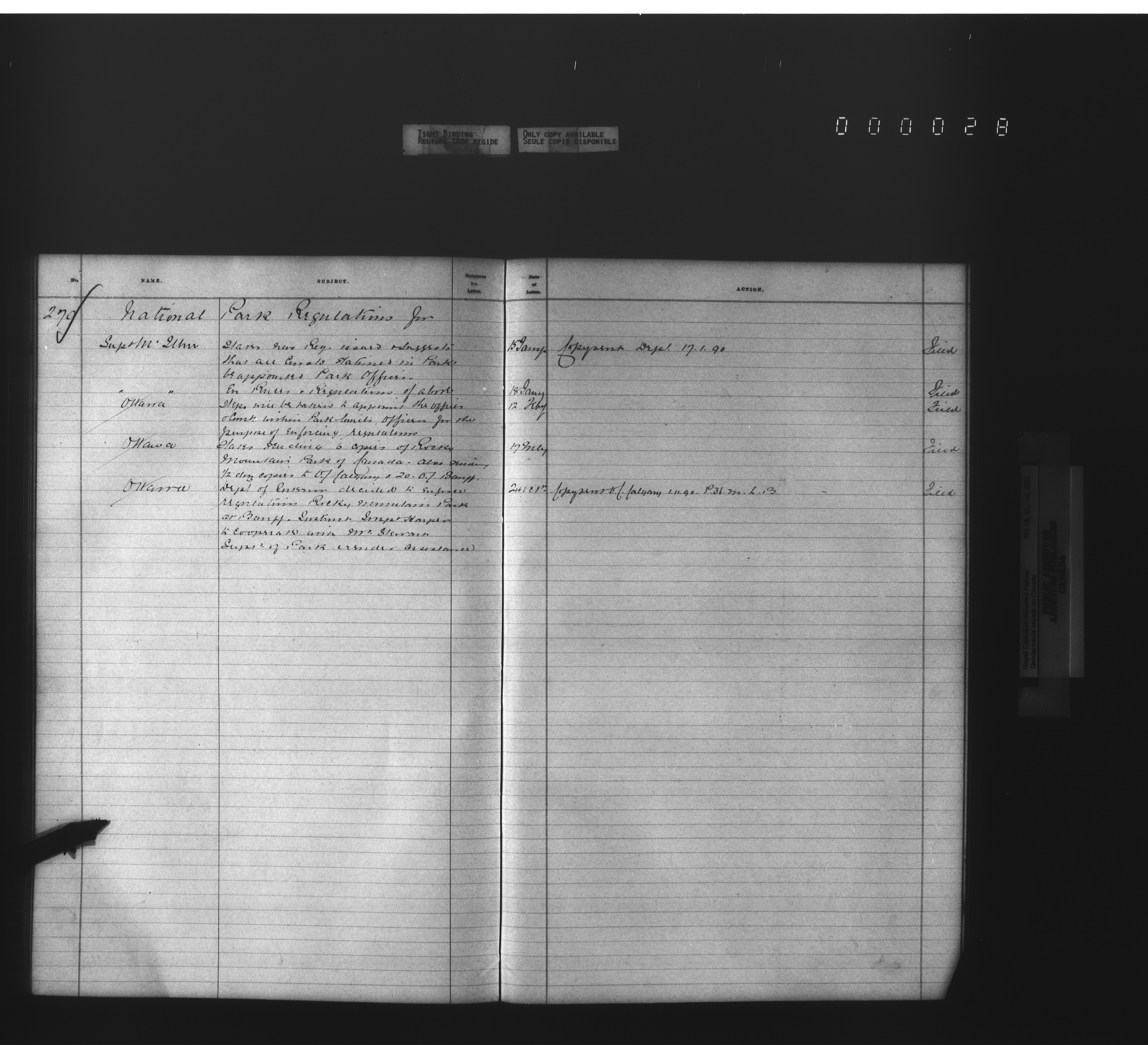 Royal Canadian Mounted Police, Office of the Commissioner: official correspondence: indexes and registers, 1876-1920 : T-4479