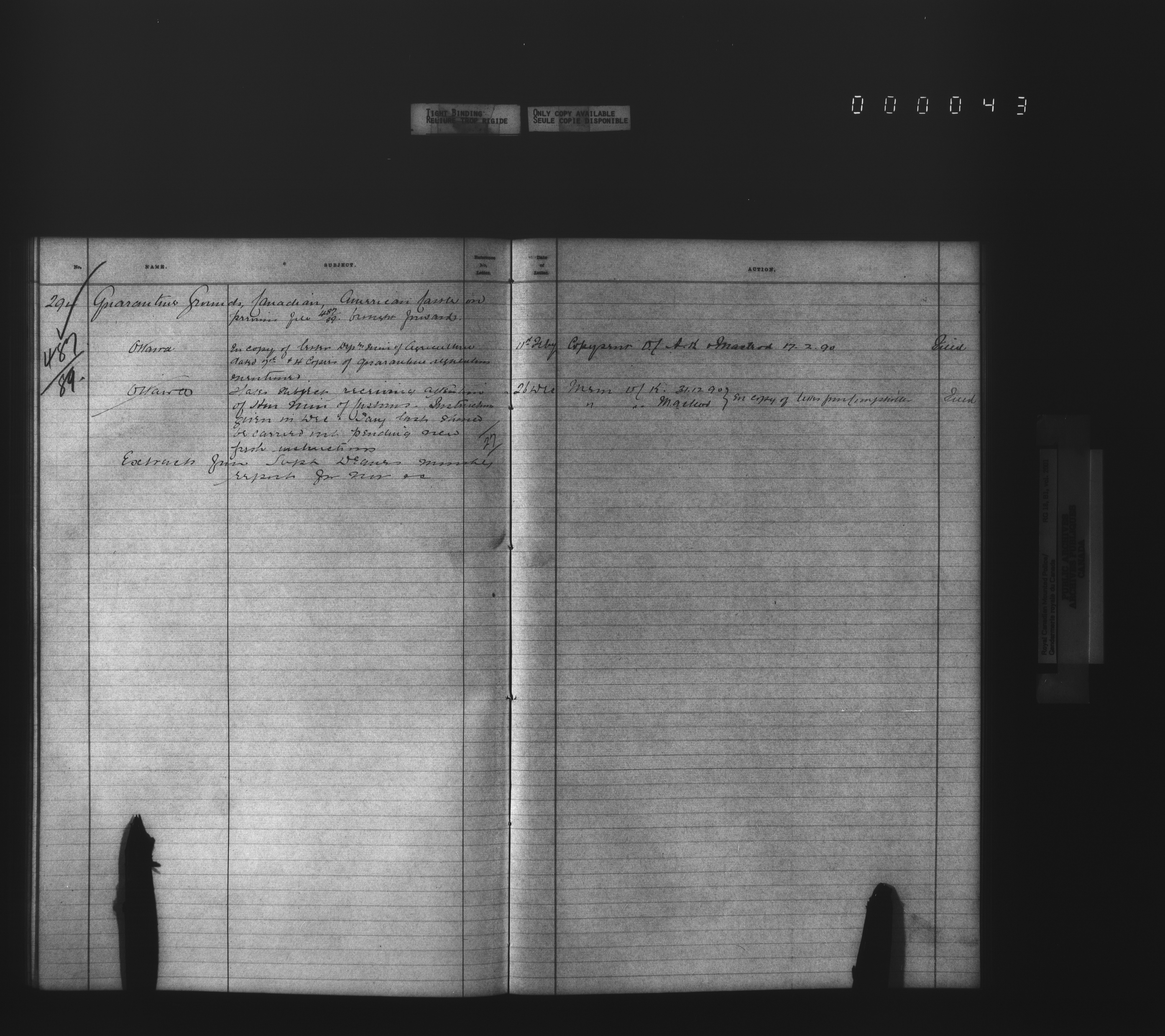 Royal Canadian Mounted Police, Office of the Commissioner: official correspondence: indexes and registers, 1876-1920 - 4479