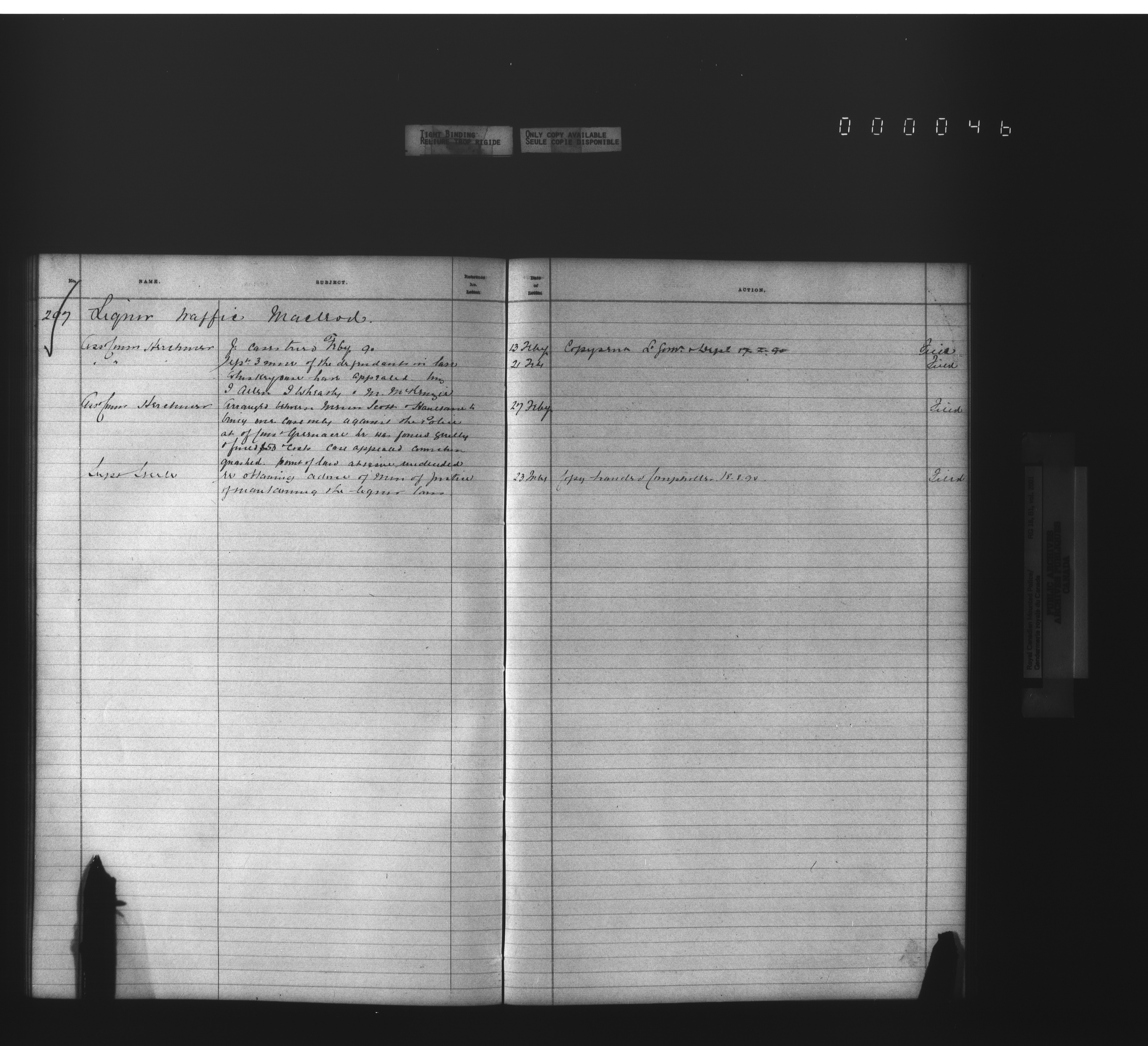 Royal Canadian Mounted Police, Office of the Commissioner: official correspondence: indexes and registers, 1876-1920 - 4479