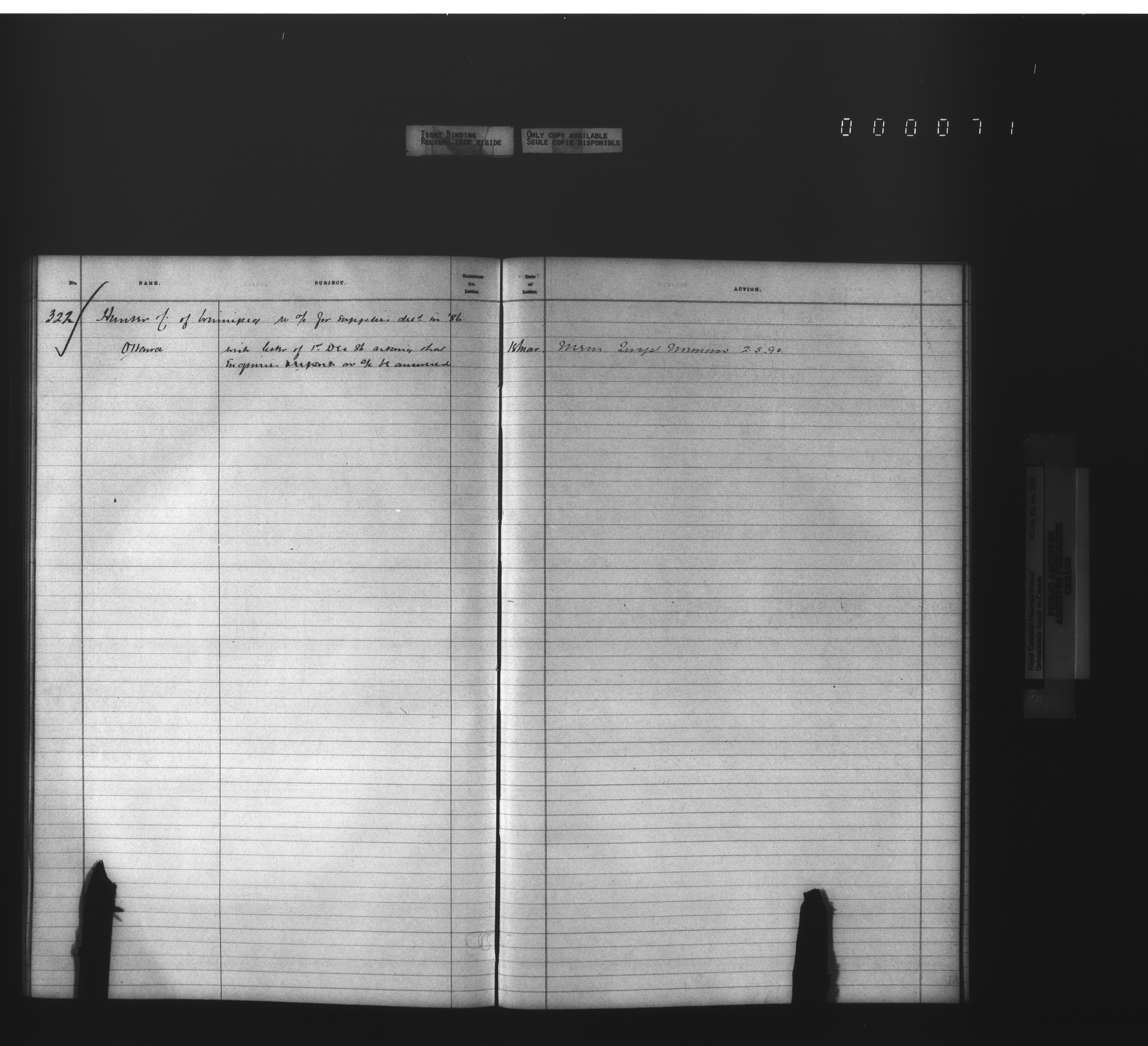 Royal Canadian Mounted Police, Office of the Commissioner: official correspondence: indexes and registers, 1876-1920 - 4479