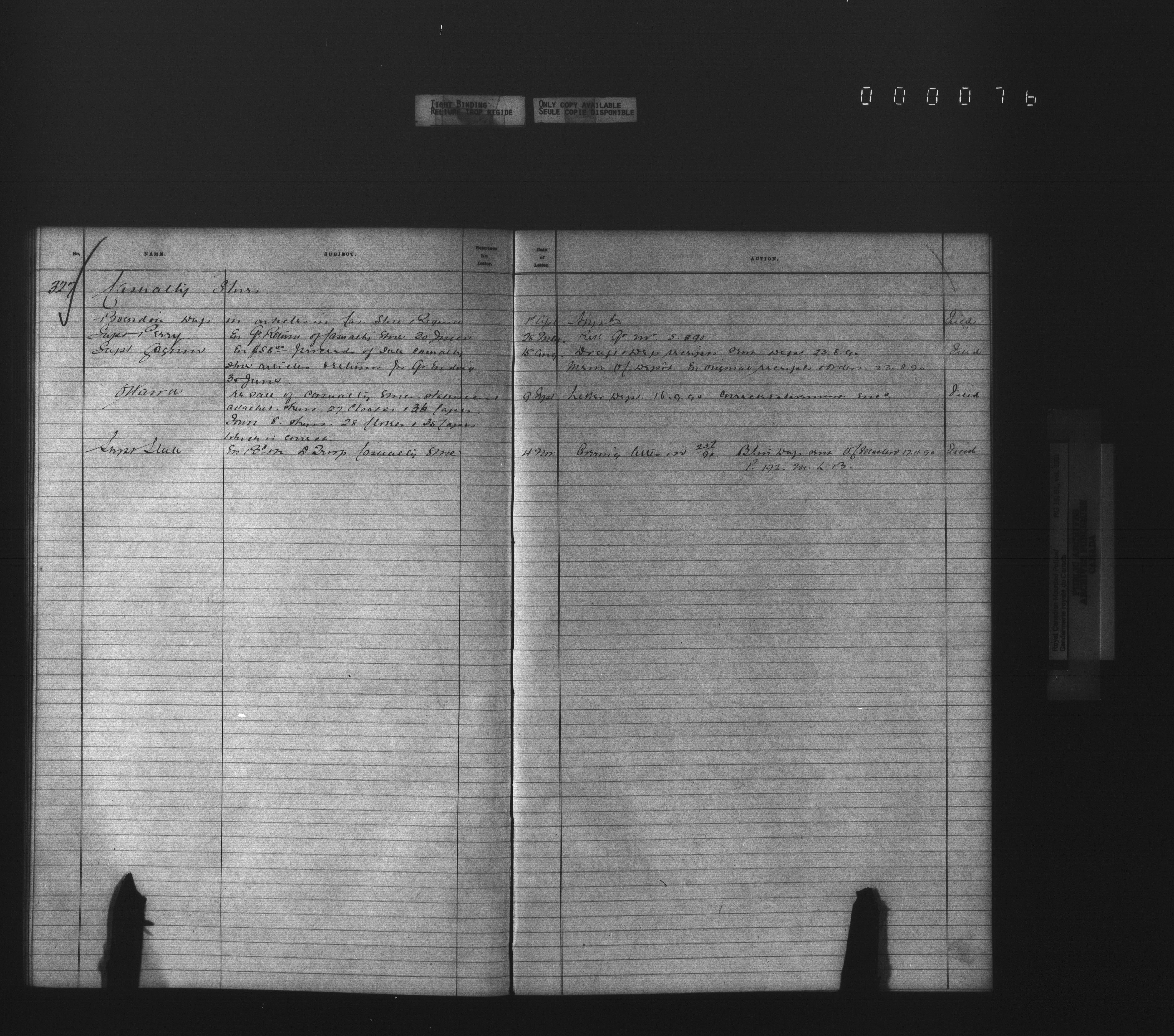 Royal Canadian Mounted Police, Office of the Commissioner: official correspondence: indexes and registers, 1876-1920 - 4479