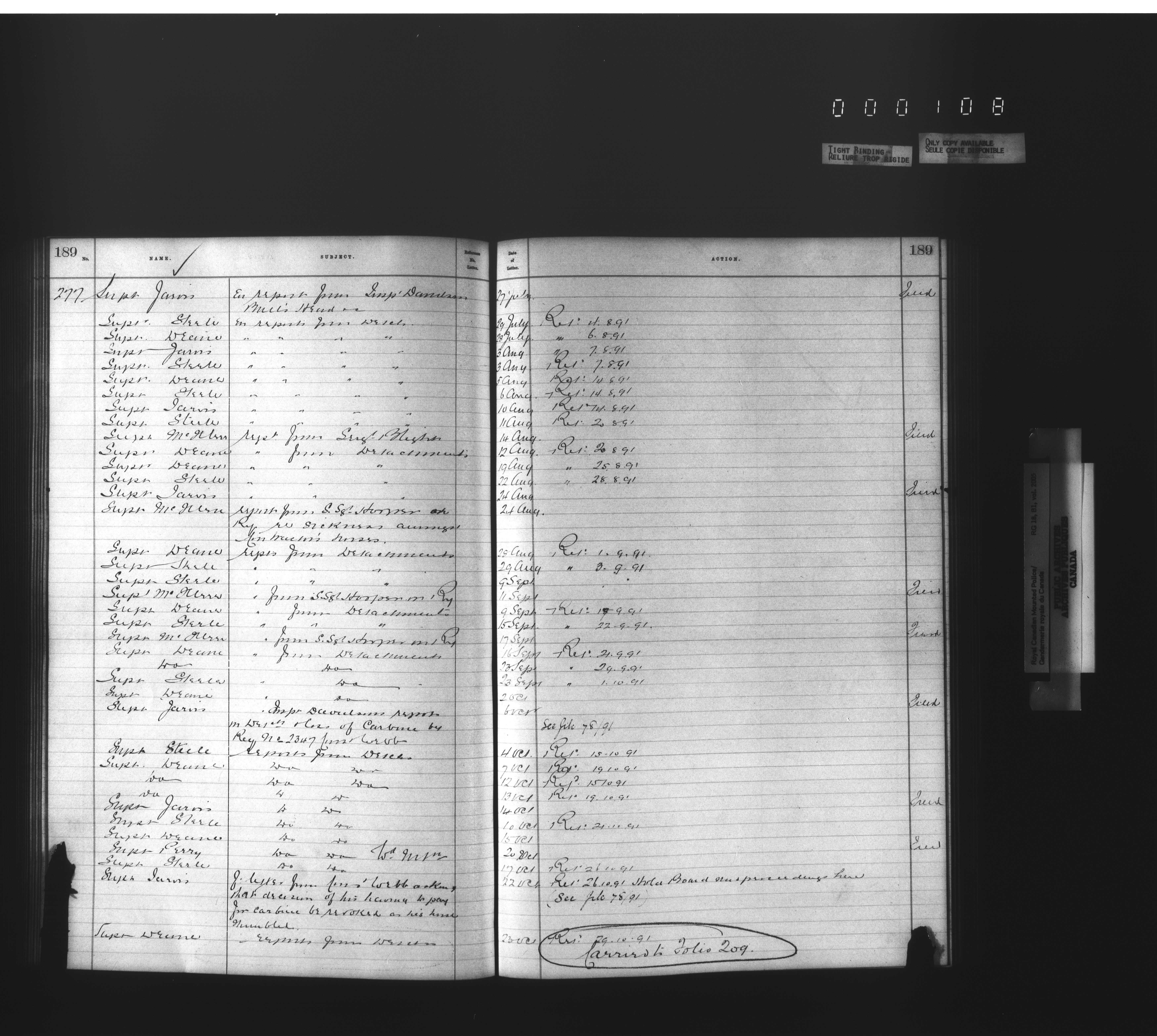 Royal Canadian Mounted Police, Office of the Commissioner: official correspondence: indexes and registers, 1876-1920 - 4480