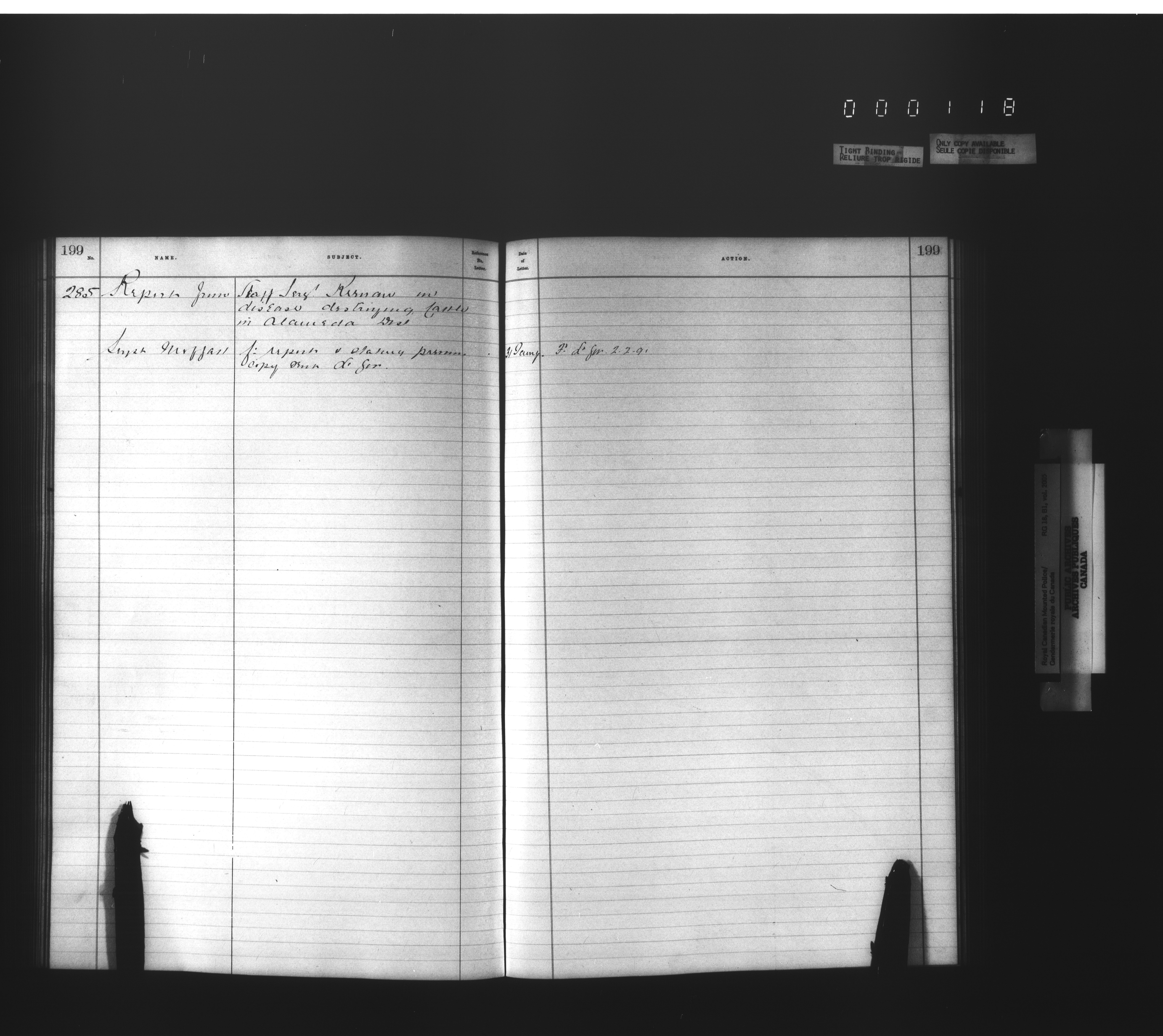 Royal Canadian Mounted Police, Office of the Commissioner: official correspondence: indexes and registers, 1876-1920 - 4480
