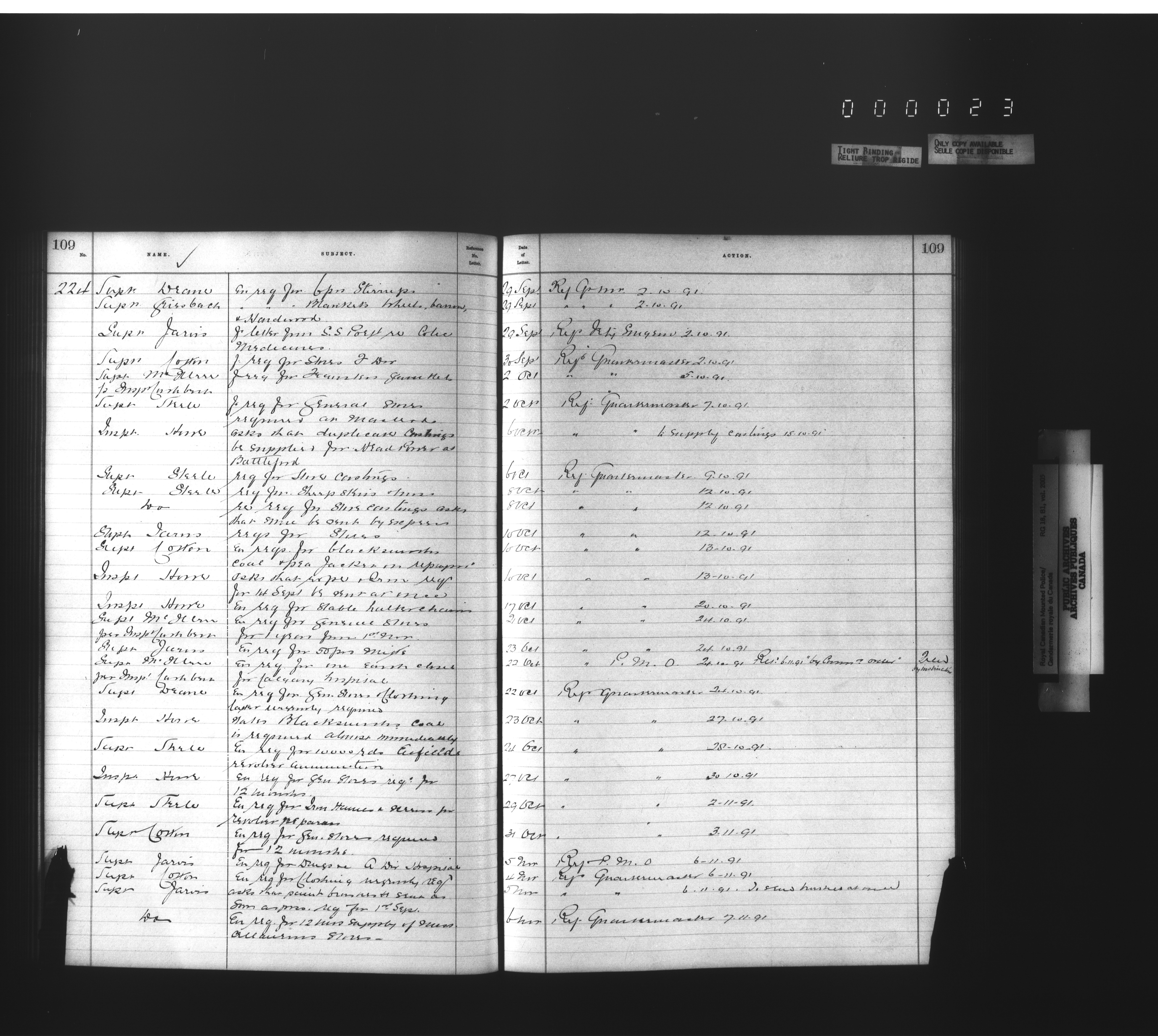 Royal Canadian Mounted Police, Office of the Commissioner: official correspondence: indexes and registers, 1876-1920 : T-4480