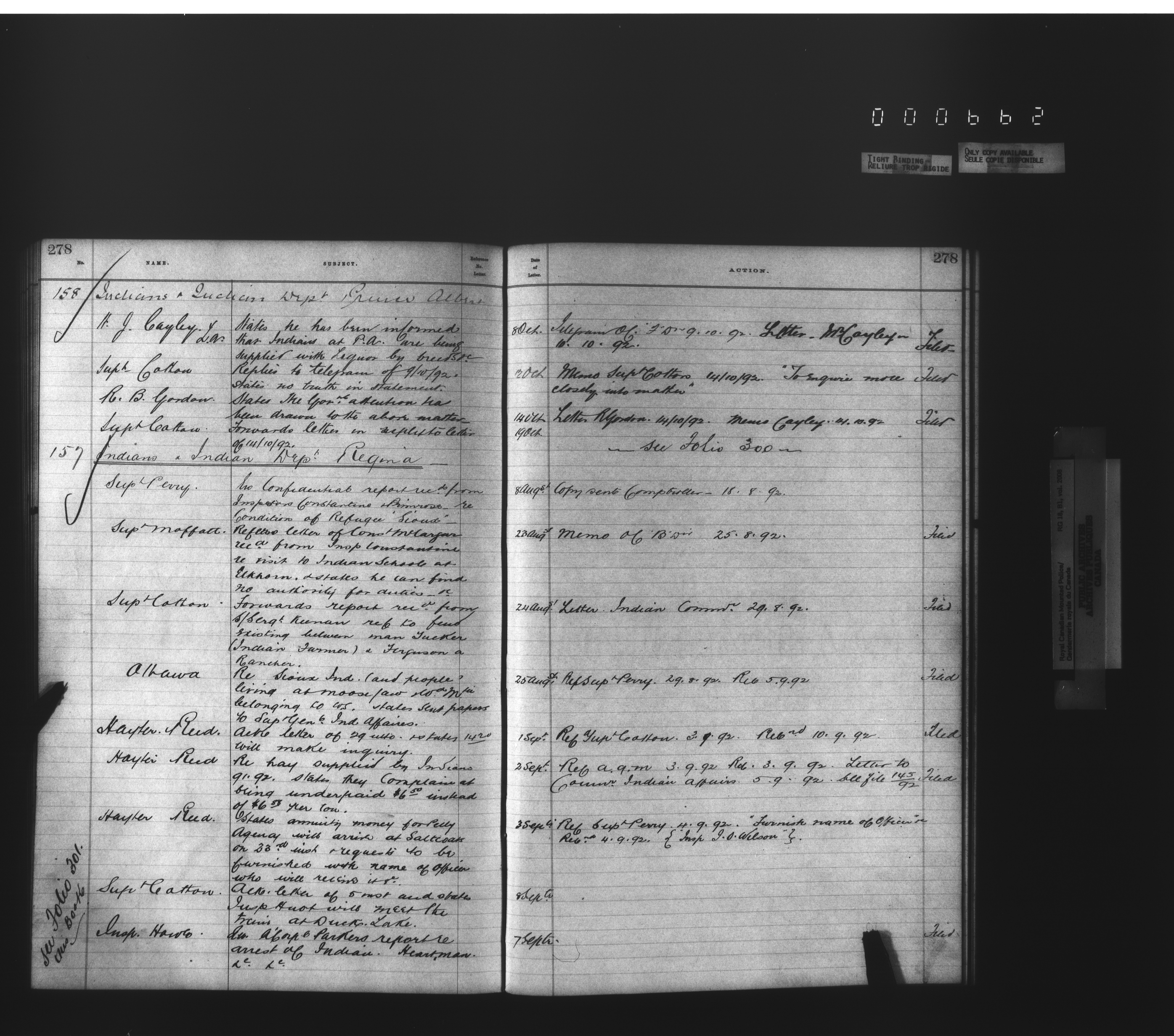 Royal Canadian Mounted Police, Office of the Commissioner: official correspondence: indexes and registers, 1876-1920 - 4480