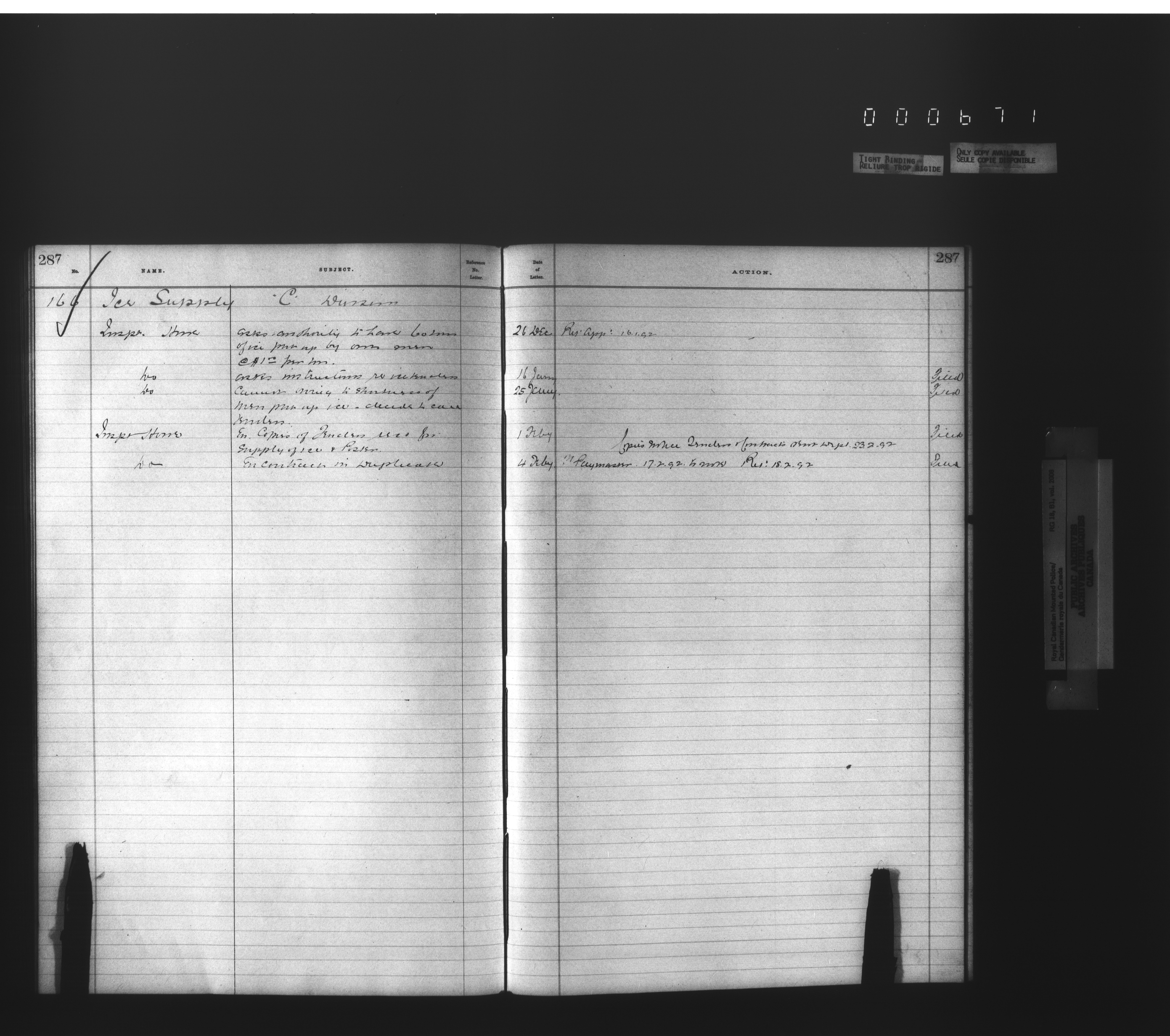 Royal Canadian Mounted Police, Office of the Commissioner: official correspondence: indexes and registers, 1876-1920 - 4480