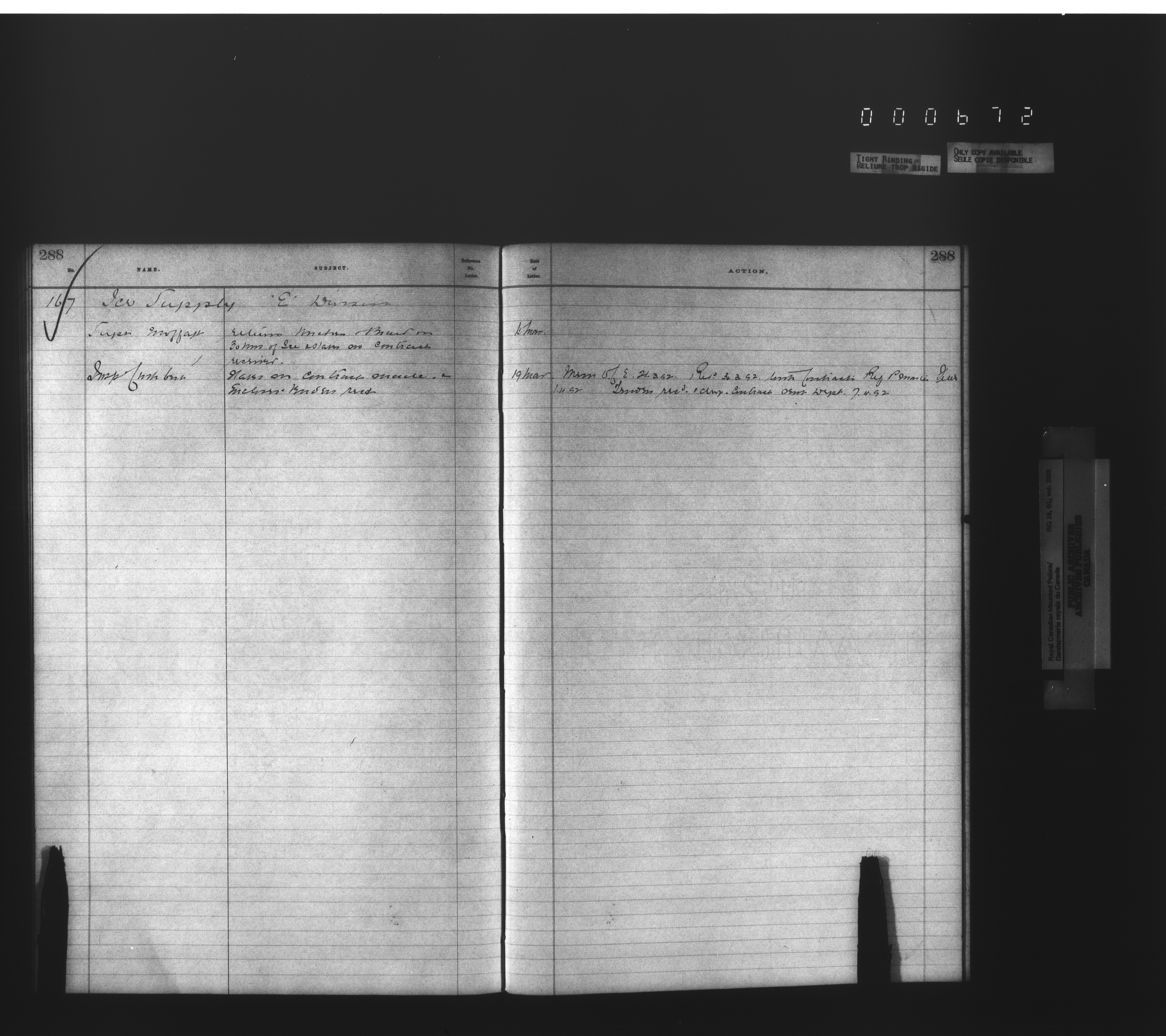 Royal Canadian Mounted Police, Office of the Commissioner: official correspondence: indexes and registers, 1876-1920 : T-4480