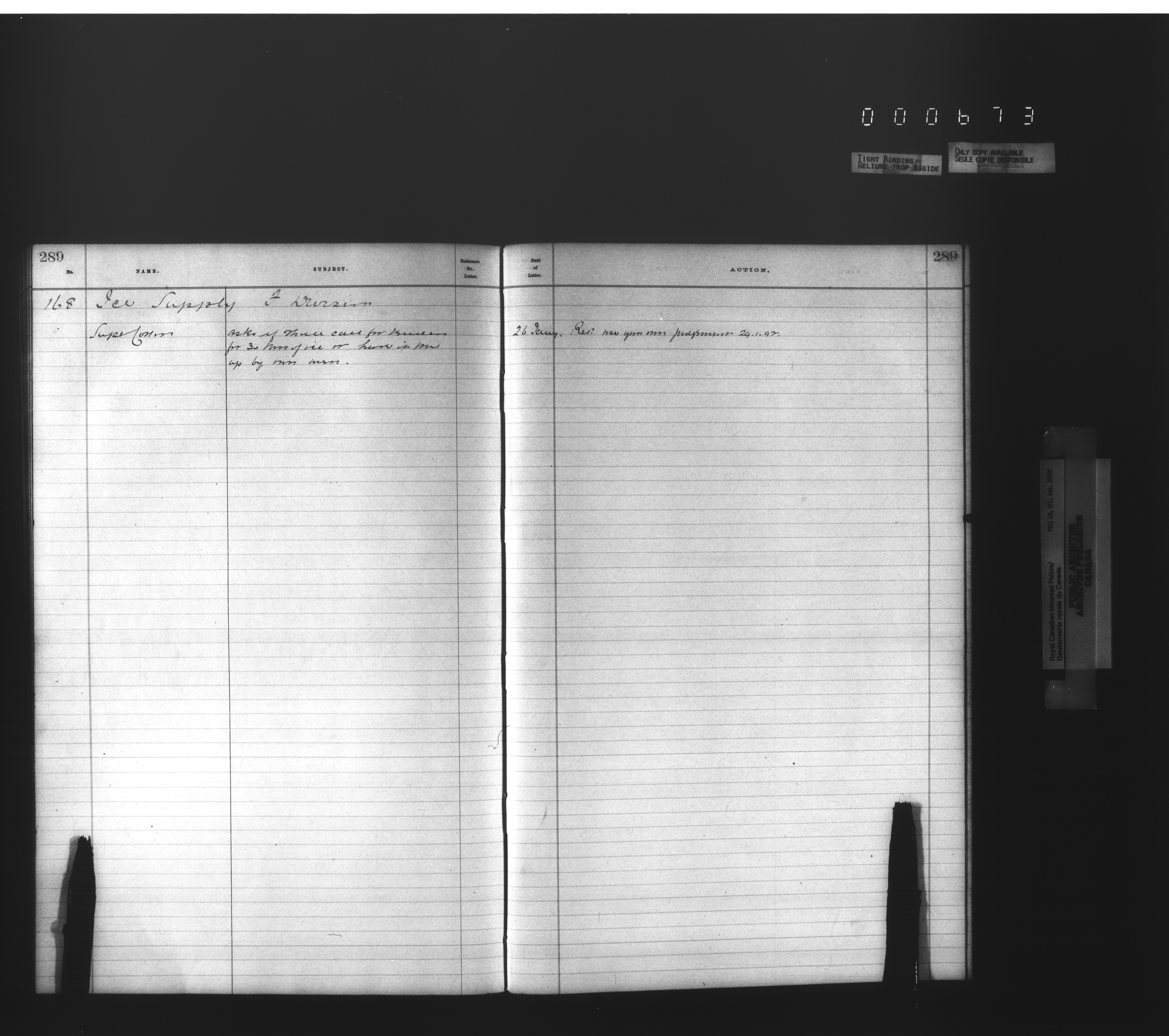 Royal Canadian Mounted Police, Office of the Commissioner: official correspondence: indexes and registers, 1876-1920 - 4480