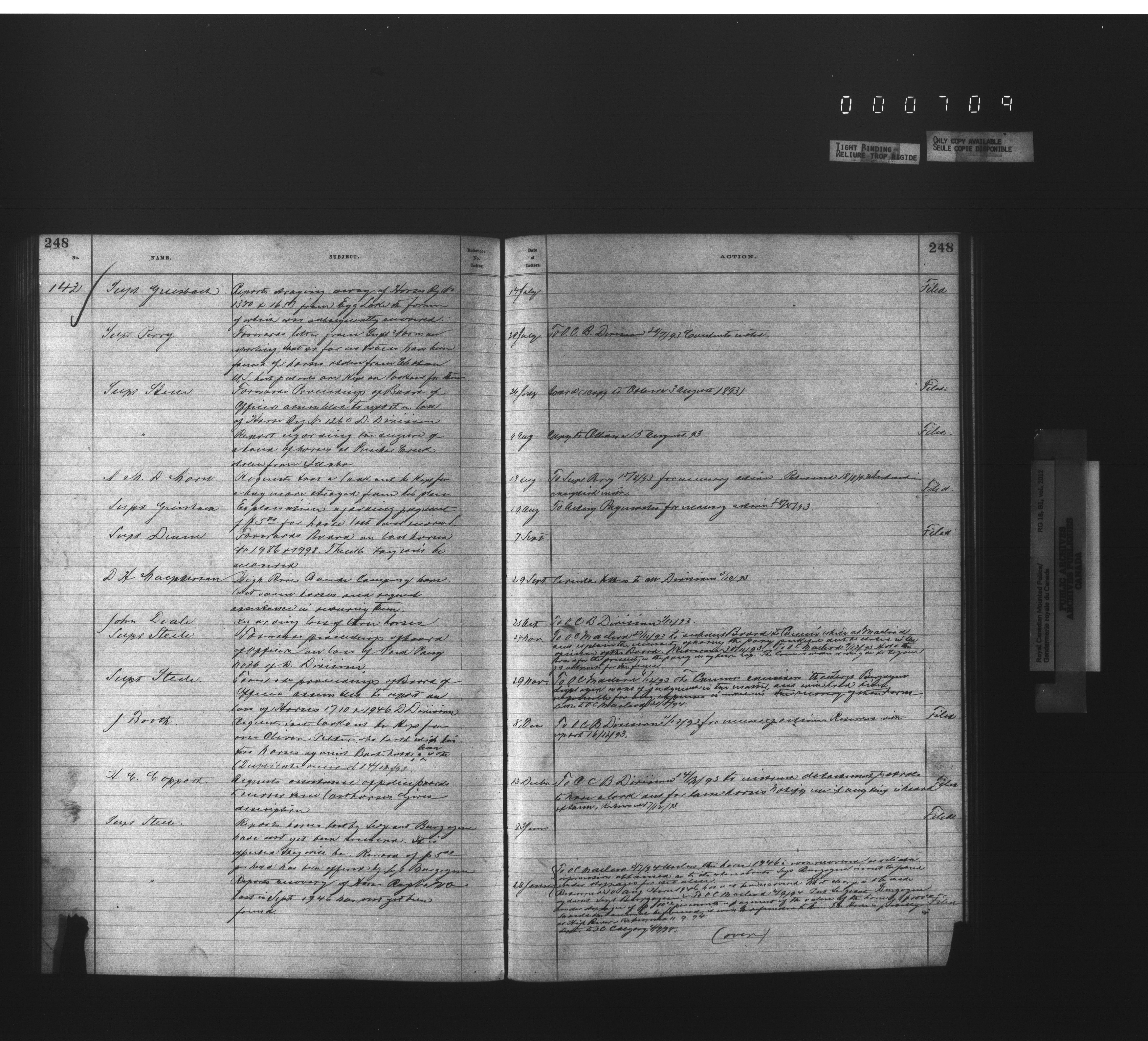 Royal Canadian Mounted Police, Office of the Commissioner: official correspondence: indexes and registers, 1876-1920 - 4481