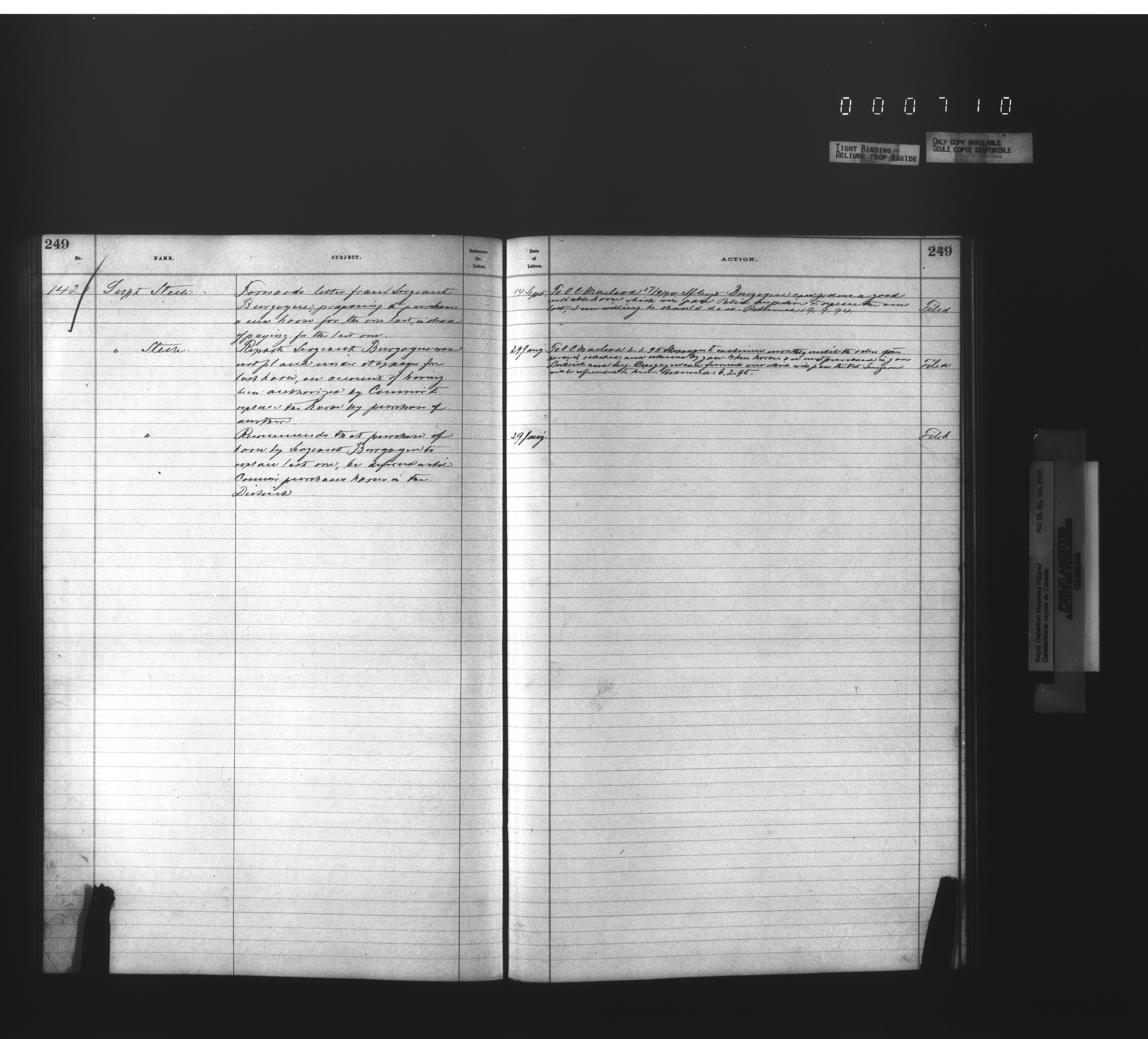 Royal Canadian Mounted Police, Office of the Commissioner: official correspondence: indexes and registers, 1876-1920 - 4481