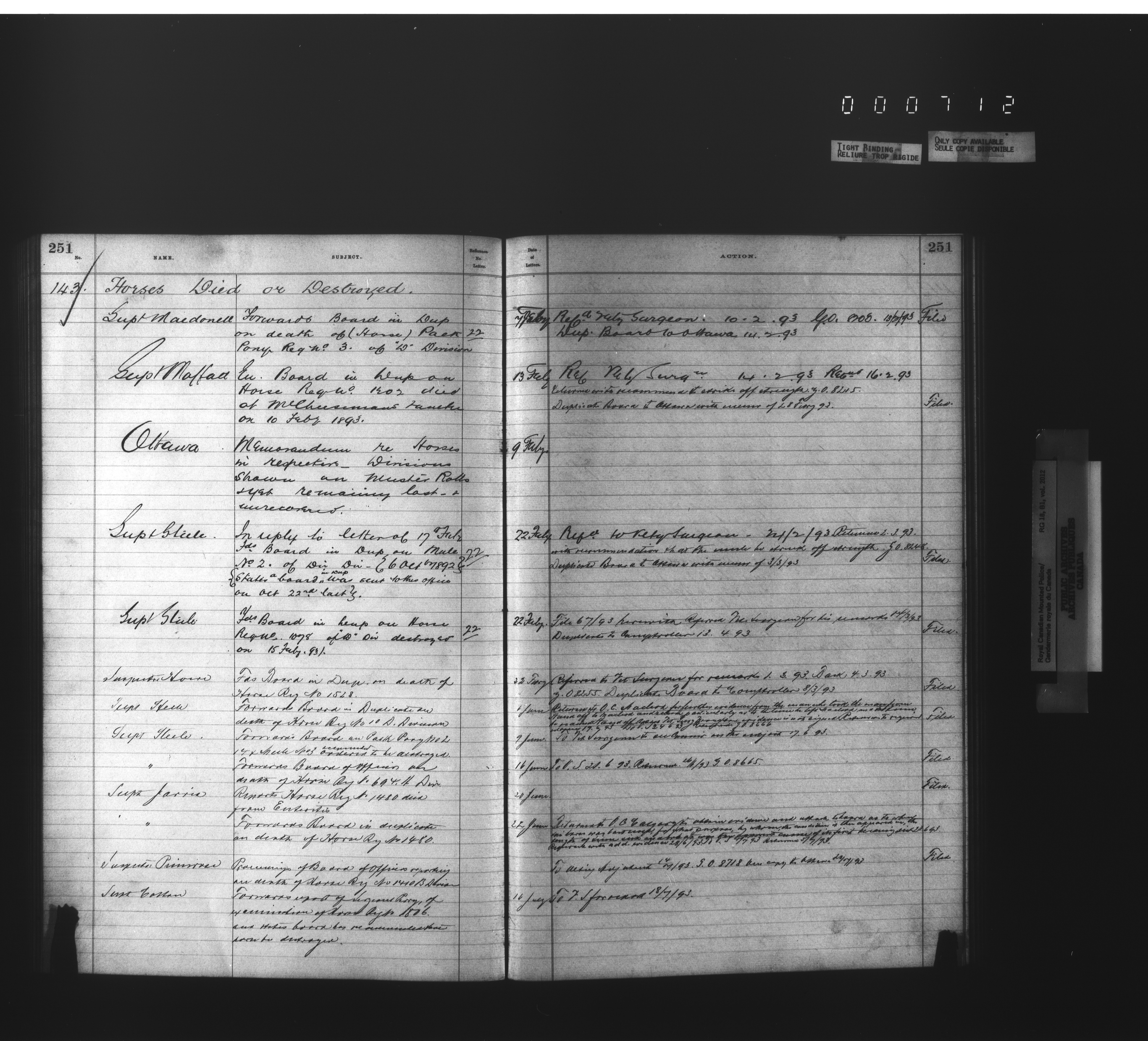 Royal Canadian Mounted Police, Office of the Commissioner: official correspondence: indexes and registers, 1876-1920 : T-4481