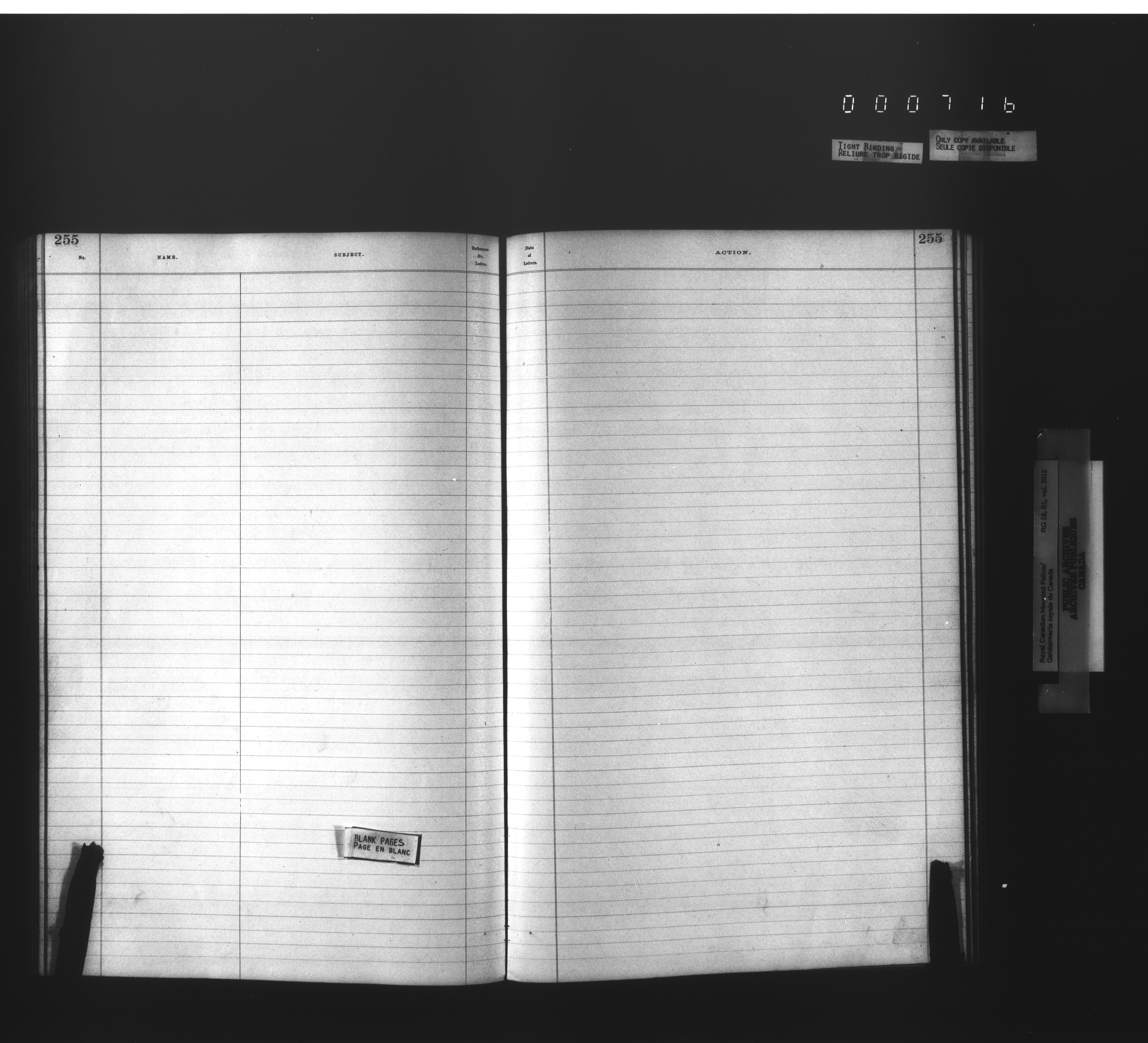 Royal Canadian Mounted Police, Office of the Commissioner: official correspondence: indexes and registers, 1876-1920 - 4481