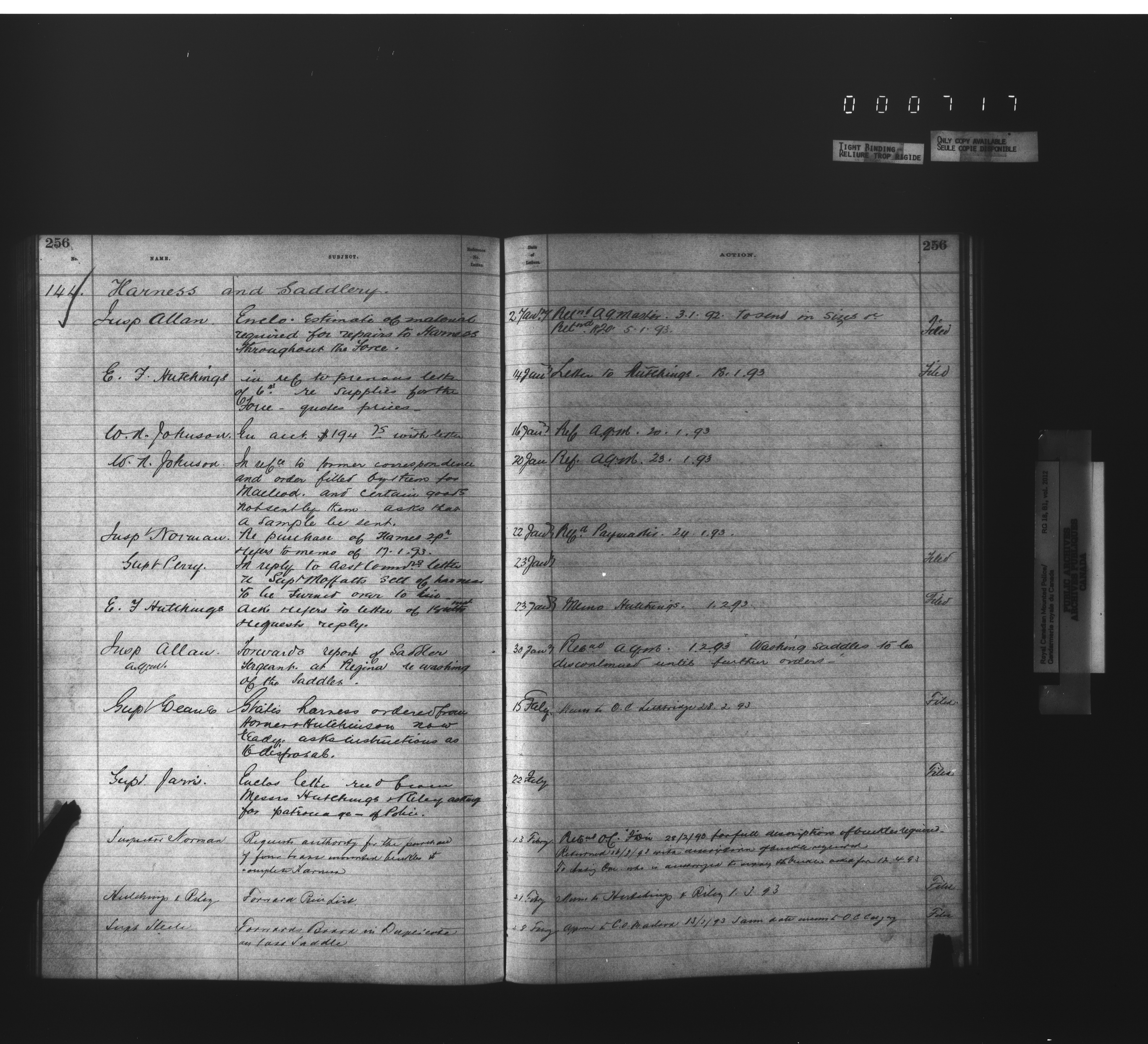 Royal Canadian Mounted Police, Office of the Commissioner: official correspondence: indexes and registers, 1876-1920 - 4481