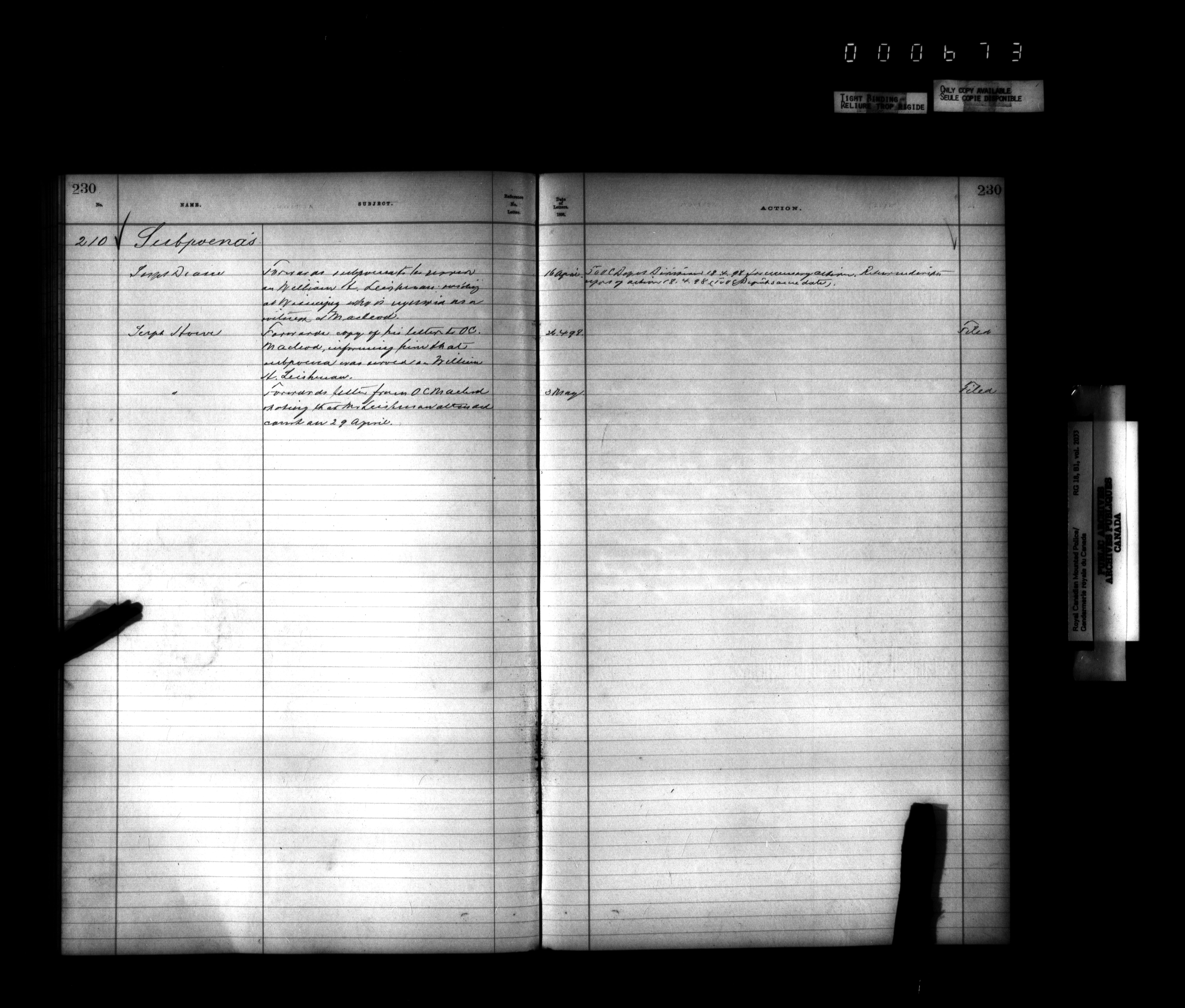 Royal Canadian Mounted Police, Office of the Commissioner: official correspondence: indexes and registers, 1876-1920 - 4487