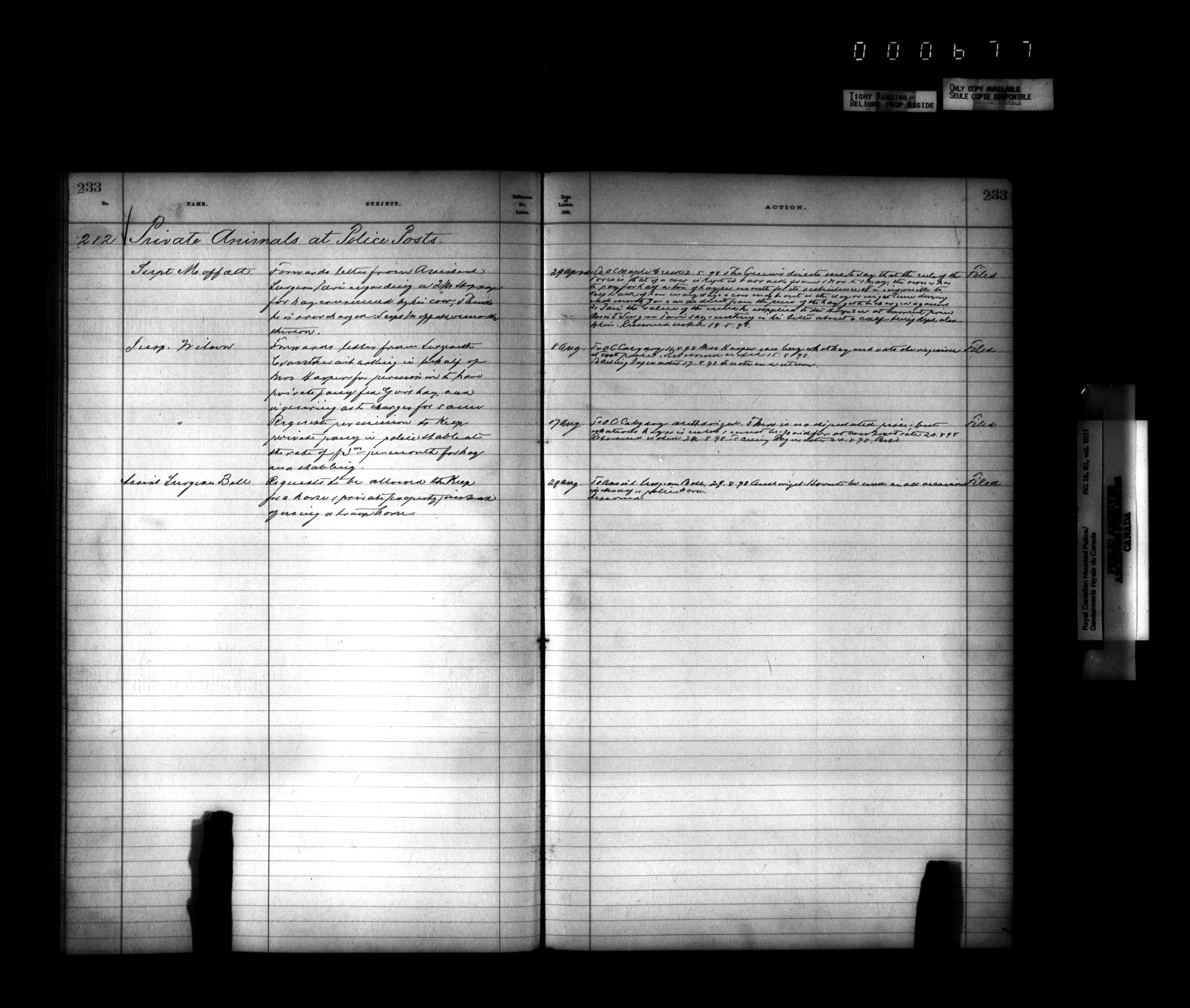 Royal Canadian Mounted Police, Office of the Commissioner: official correspondence: indexes and registers, 1876-1920 : T-4487