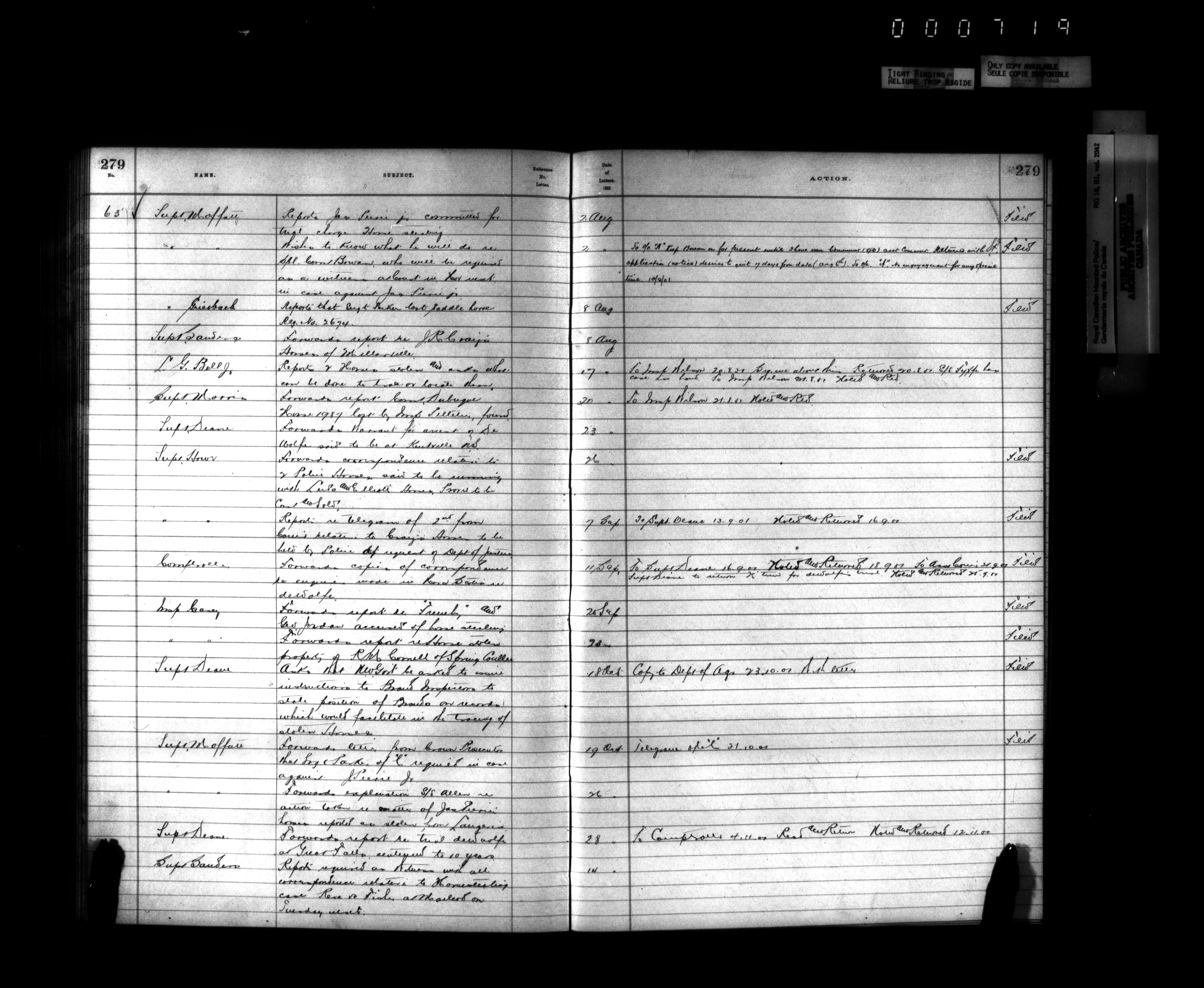 Royal Canadian Mounted Police, Office of the Commissioner: official correspondence: indexes and registers, 1876-1920 - 4489