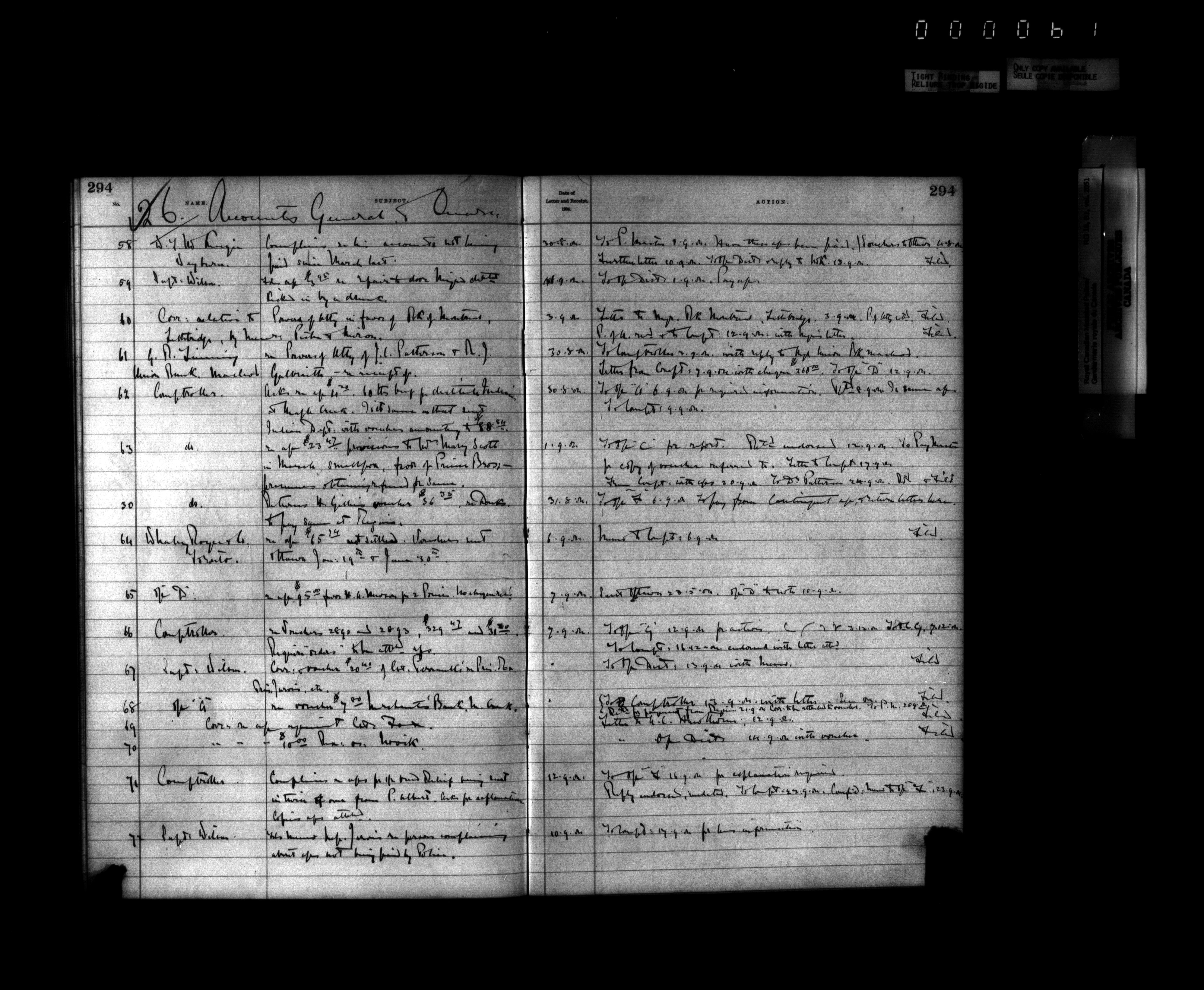 Royal Canadian Mounted Police, Office of the Commissioner: official correspondence: indexes and registers, 1876-1920 - 4492
