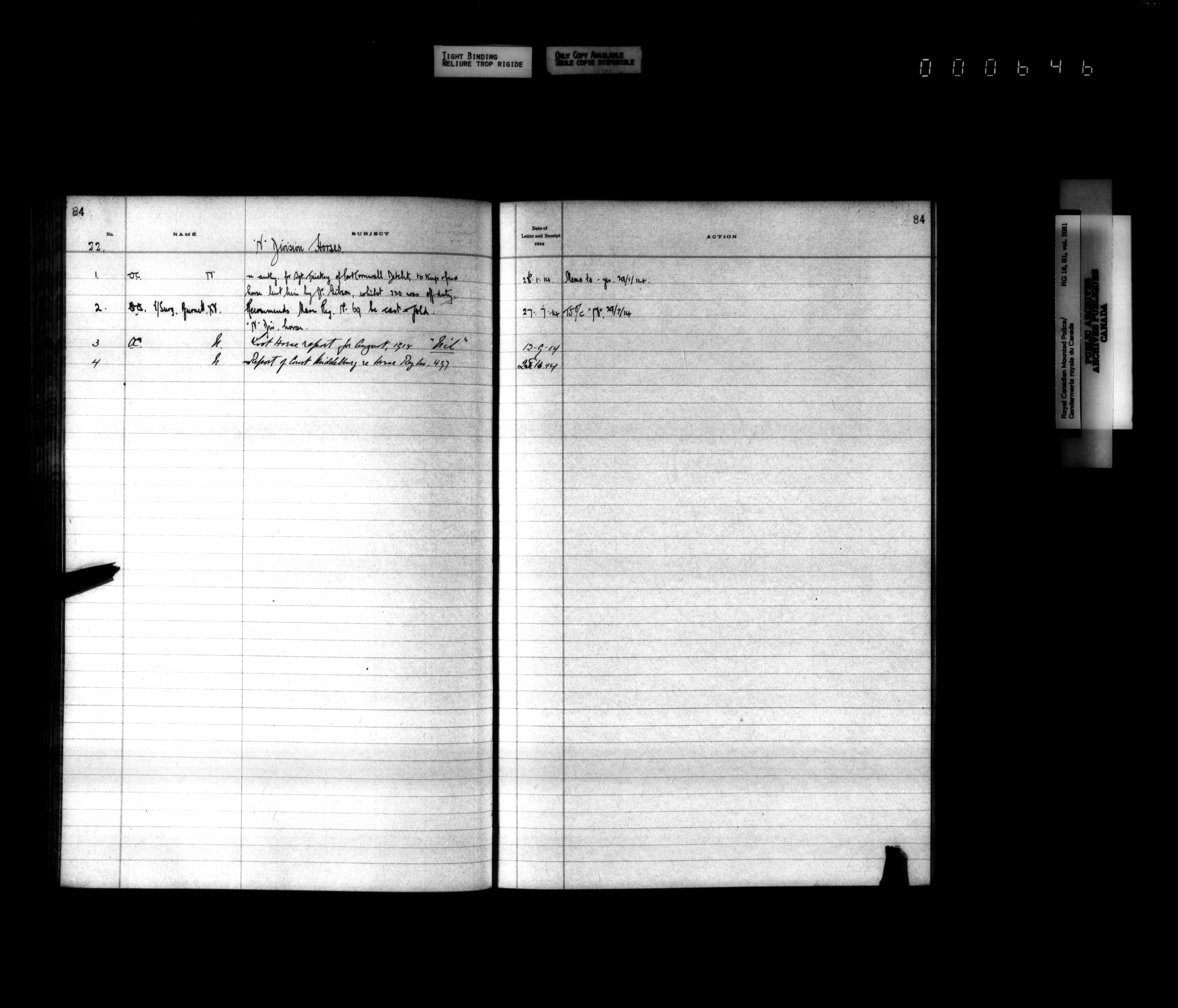 Royal Canadian Mounted Police, Office of the Commissioner: official correspondence: indexes and registers, 1876-1920 : T-4498