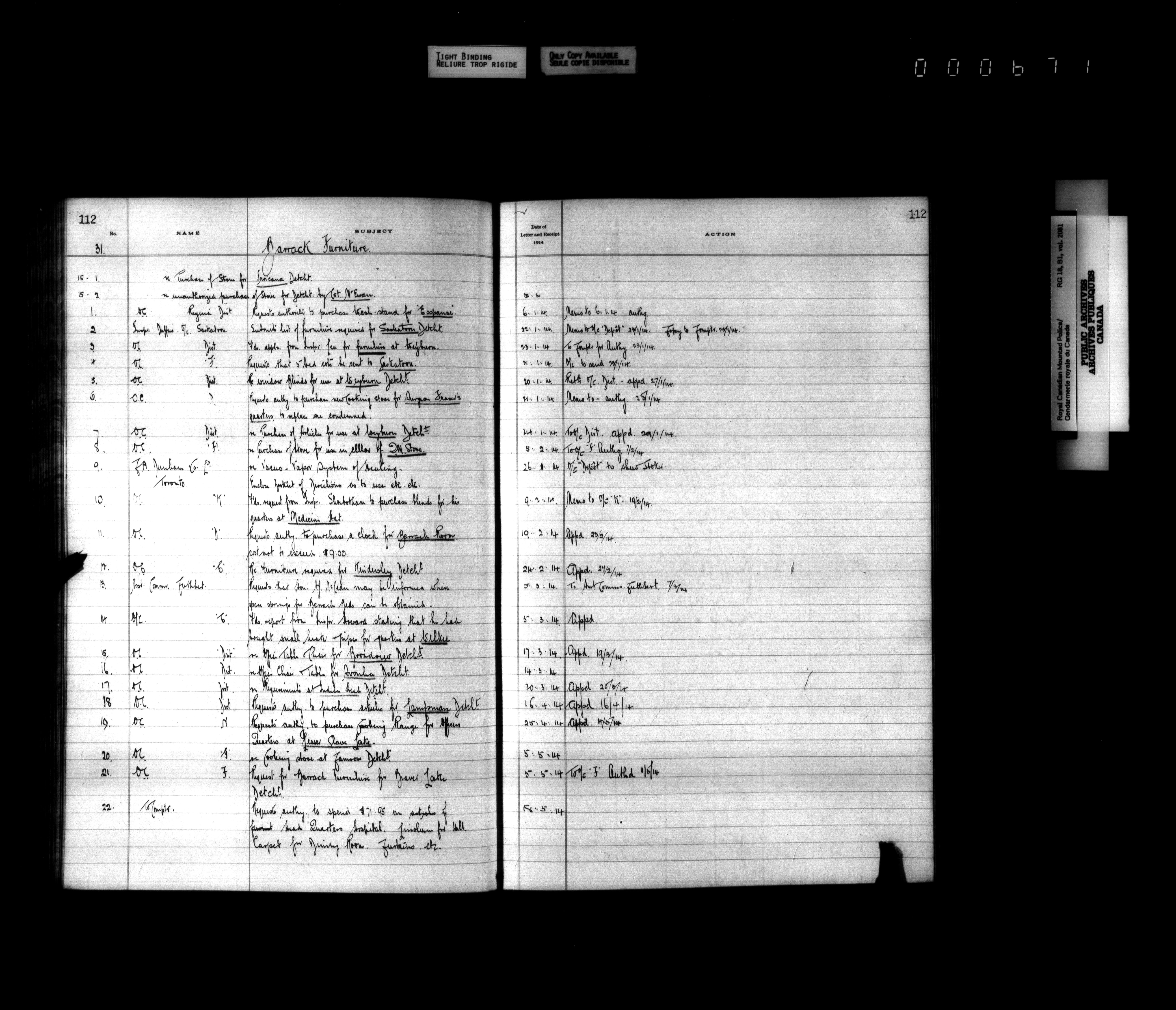 Royal Canadian Mounted Police, Office of the Commissioner: official correspondence: indexes and registers, 1876-1920 : T-4498