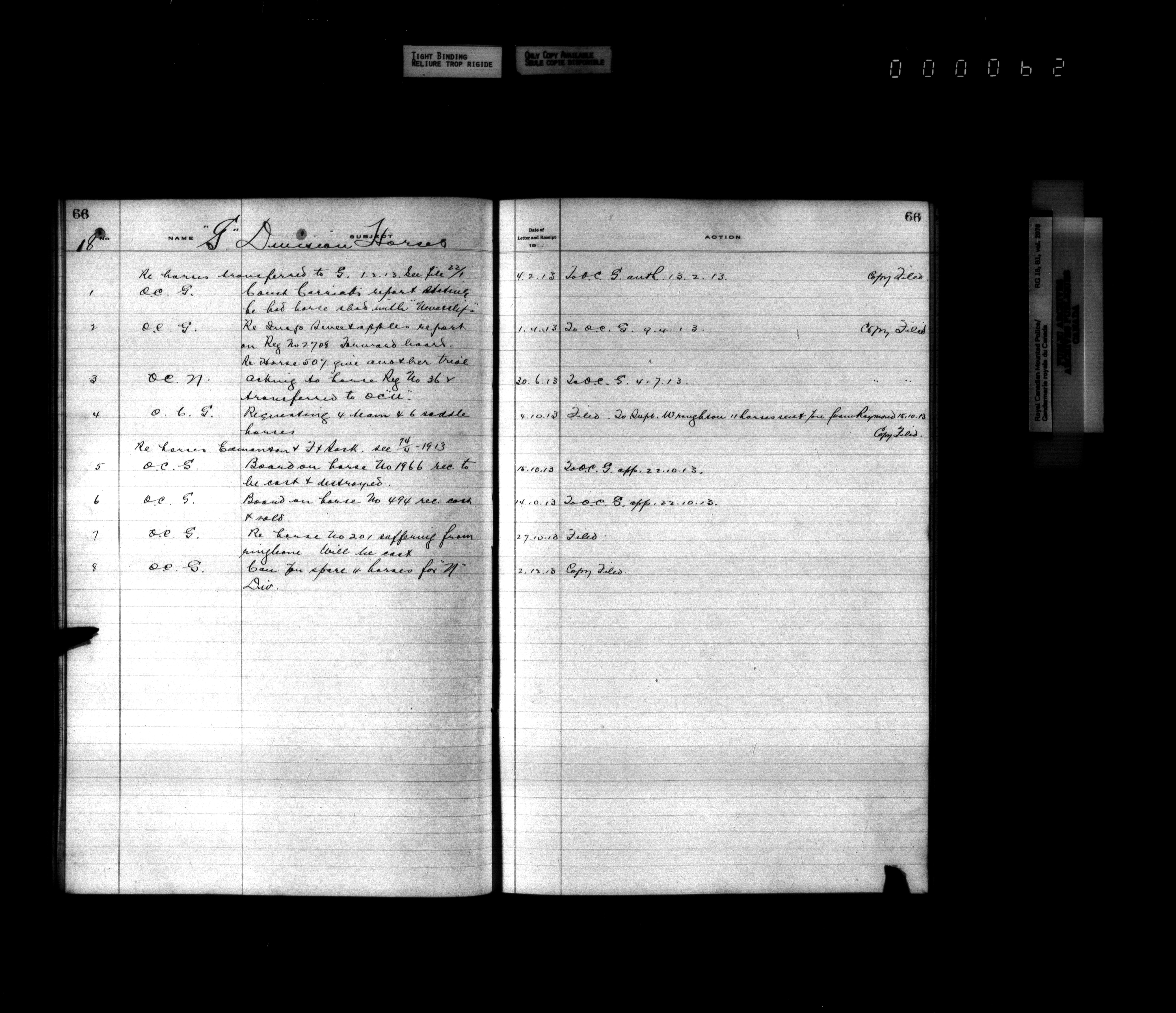 Royal Canadian Mounted Police, Office of the Commissioner: official correspondence: indexes and registers, 1876-1920 : T-4498
