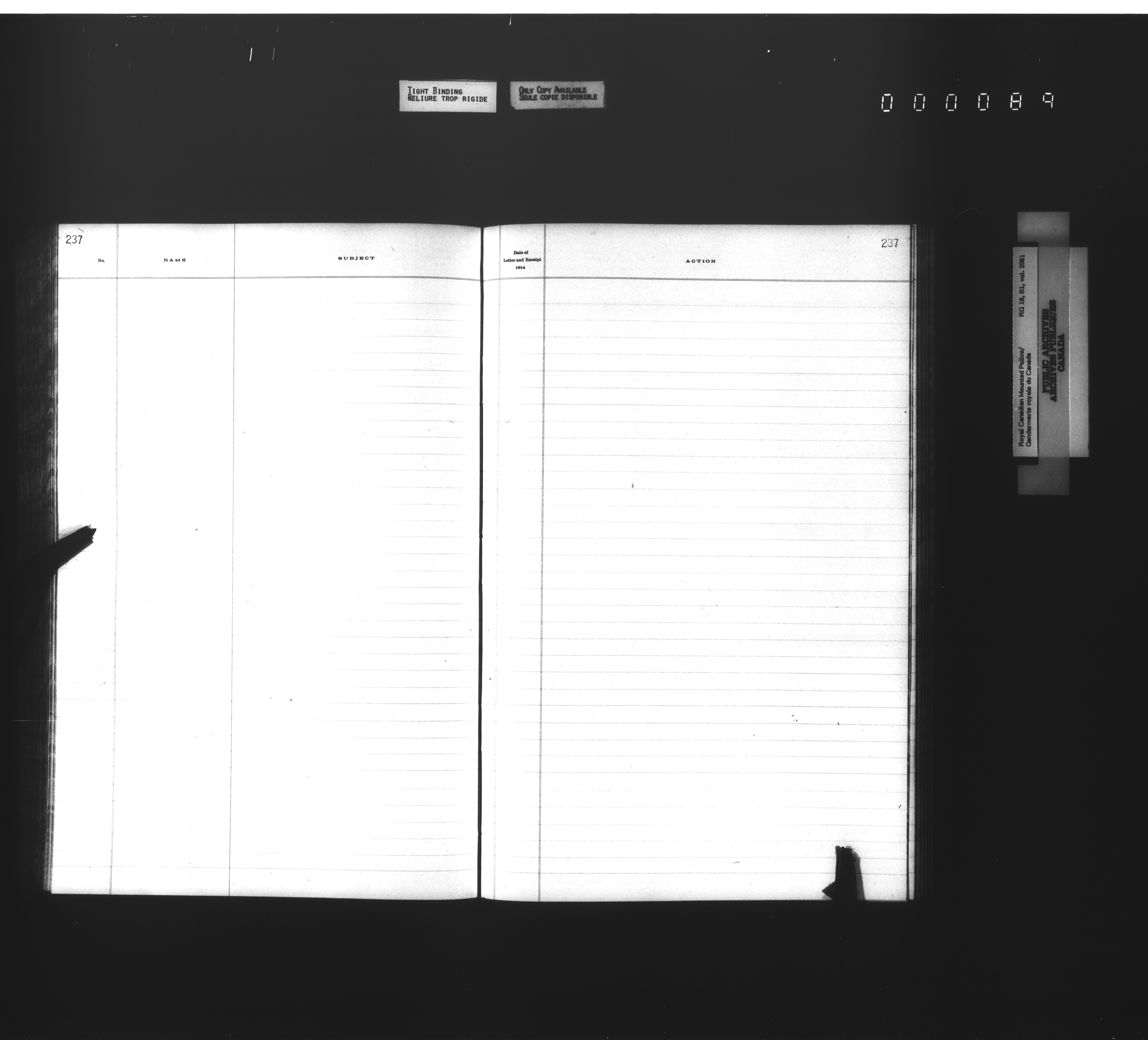 Royal Canadian Mounted Police, Office of the Commissioner: official correspondence: indexes and registers, 1876-1920 - 4499