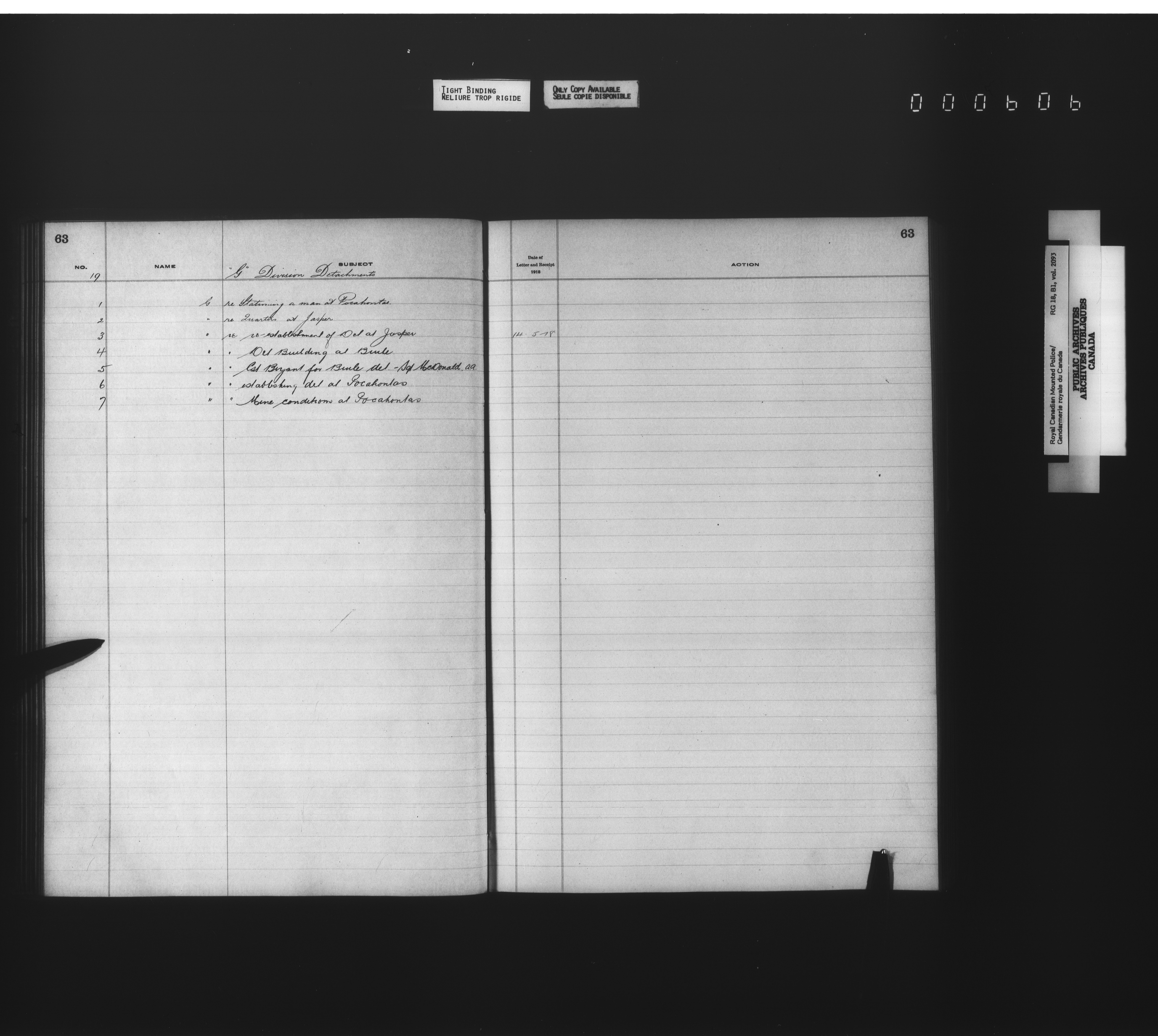 Royal Canadian Mounted Police, Office of the Commissioner: official correspondence: indexes and registers, 1876-1920 - 4501