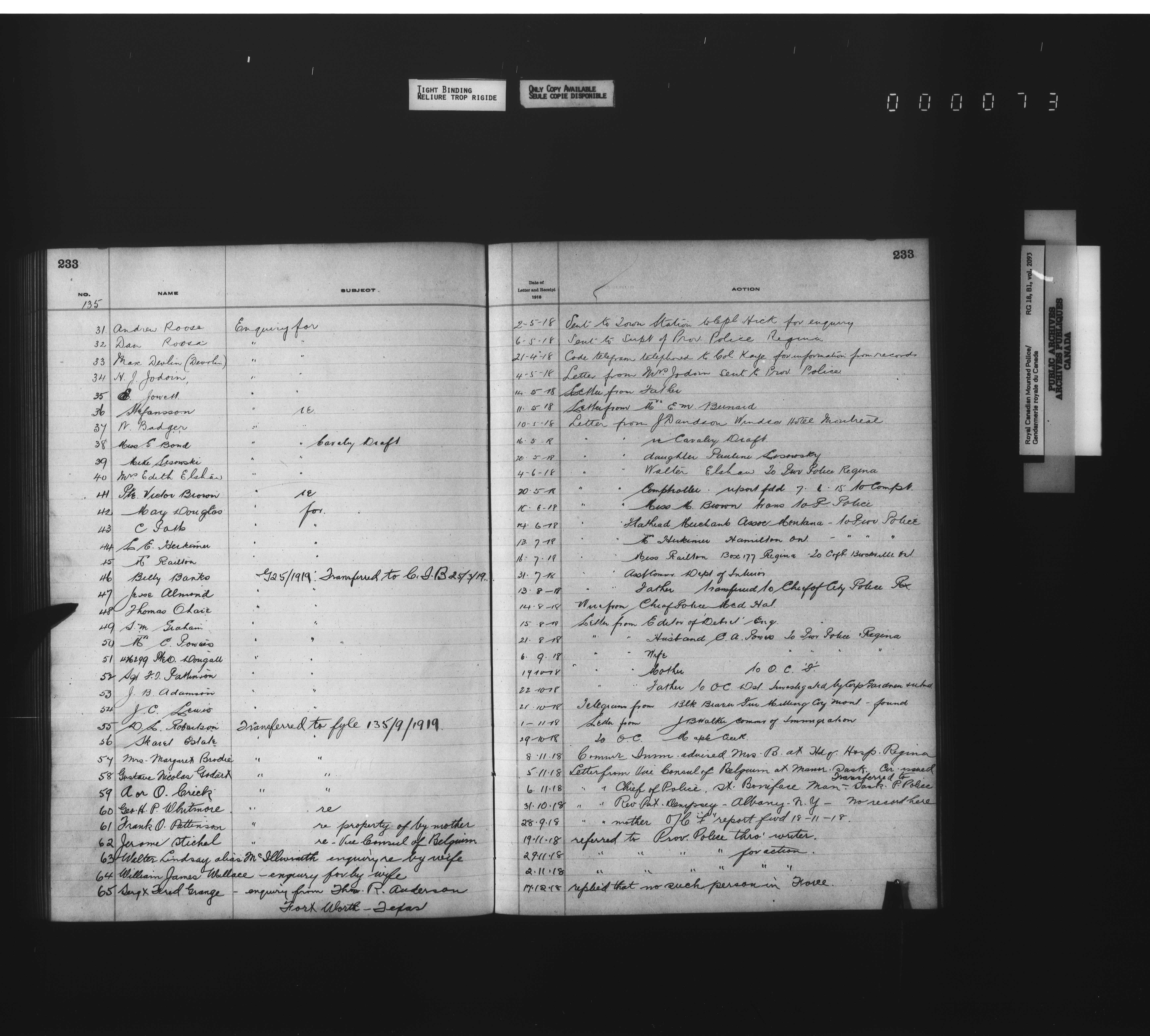 Royal Canadian Mounted Police, Office of the Commissioner: official correspondence: indexes and registers, 1876-1920 - 4502