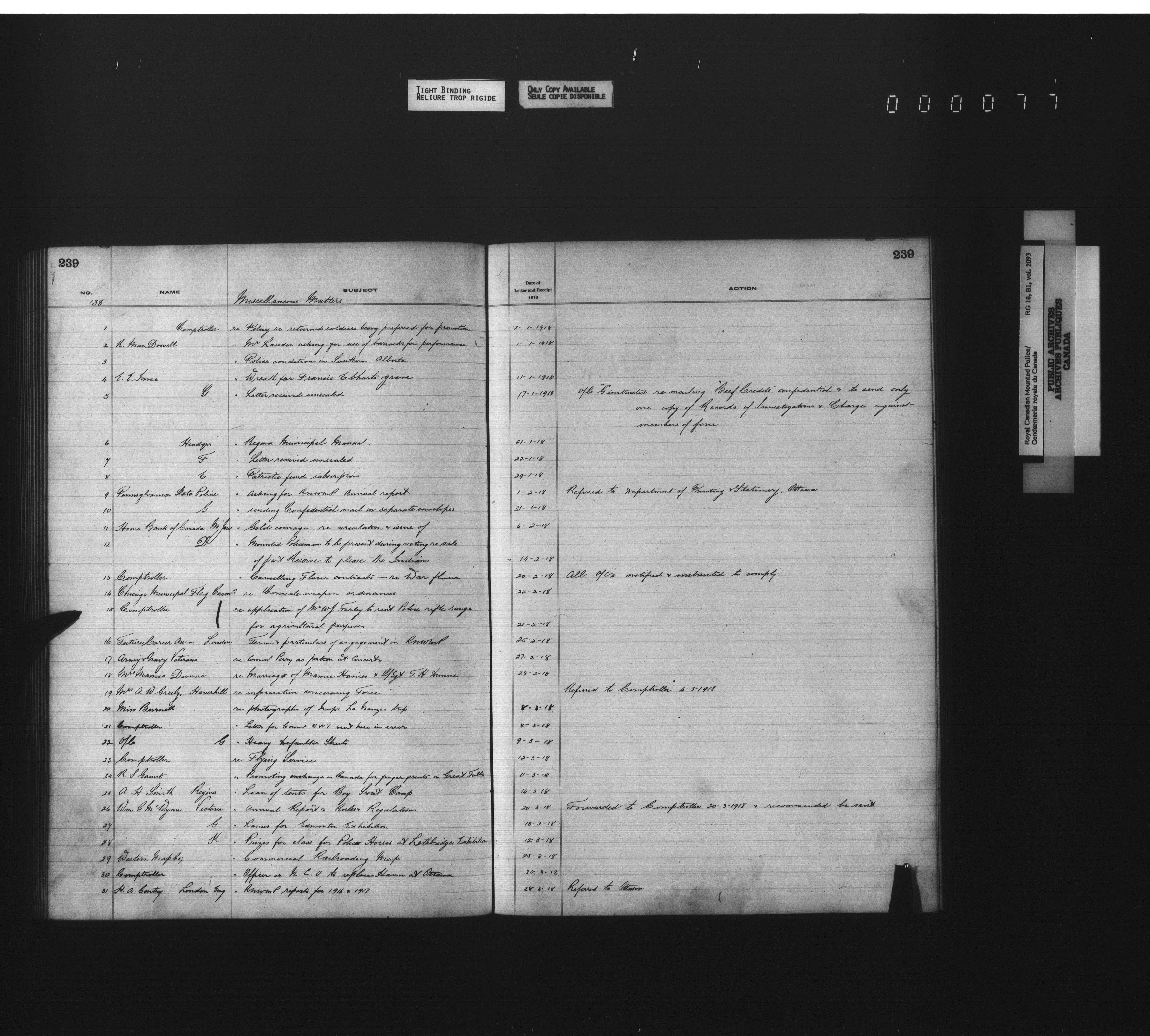 Royal Canadian Mounted Police, Office of the Commissioner: official correspondence: indexes and registers, 1876-1920 - 4502