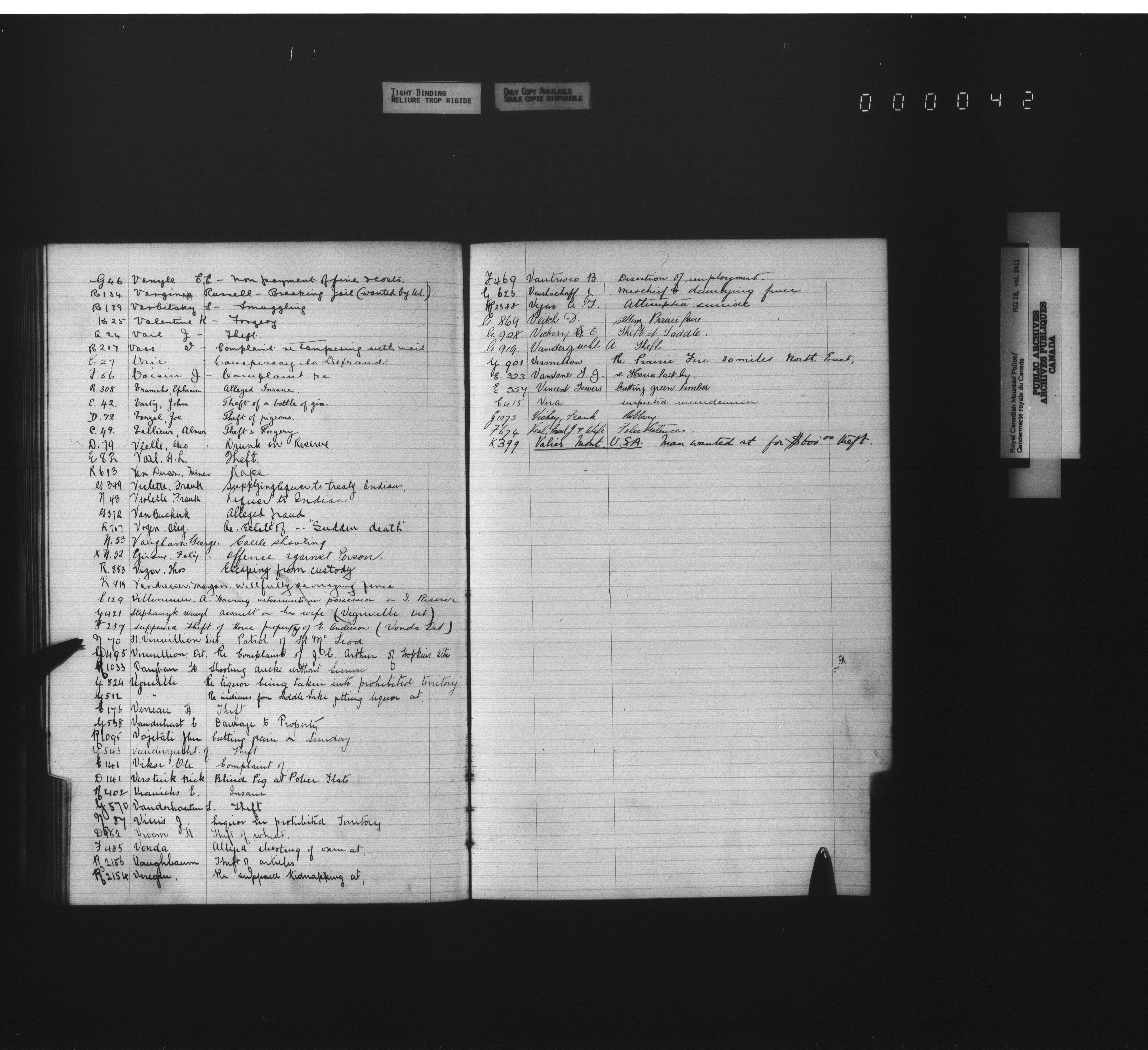 Royal Canadian Mounted Police : Crime indexes and registers - 4506