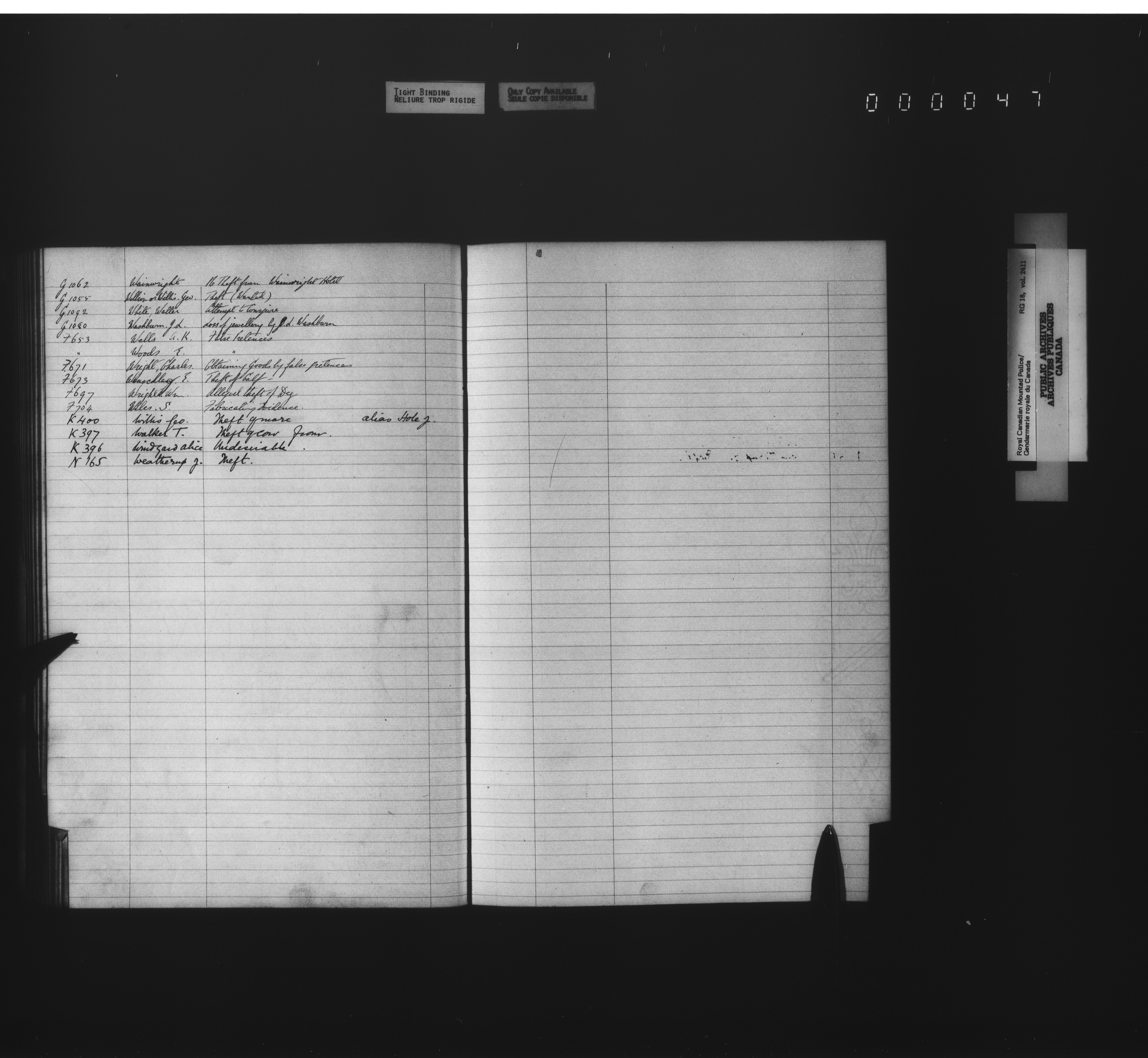 Royal Canadian Mounted Police : Crime indexes and registers - 4506