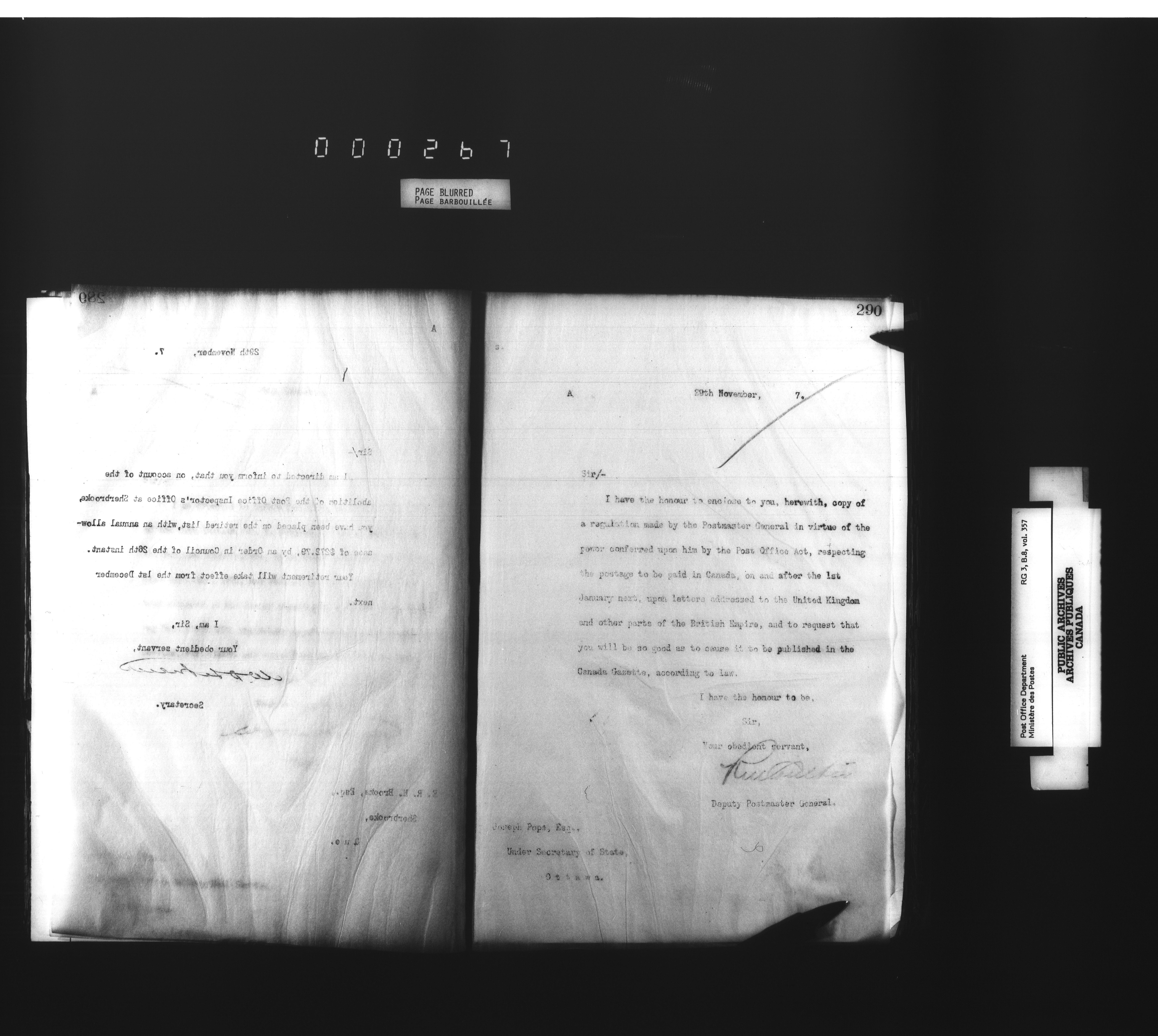 Deputy Postmaster General : Letterbooks related to personnel : T-4531