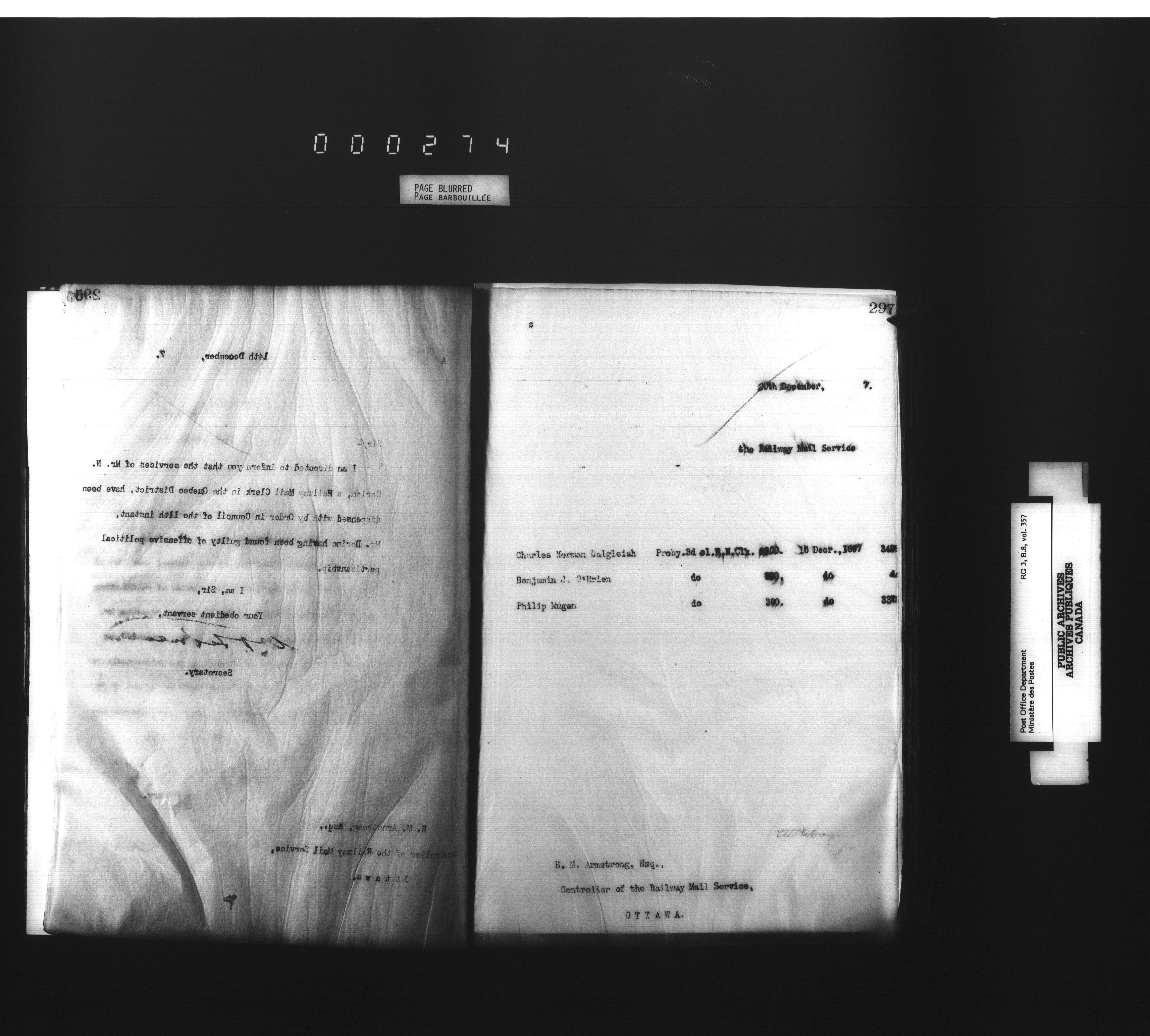 Deputy Postmaster General : Letterbooks related to personnel : T-4531