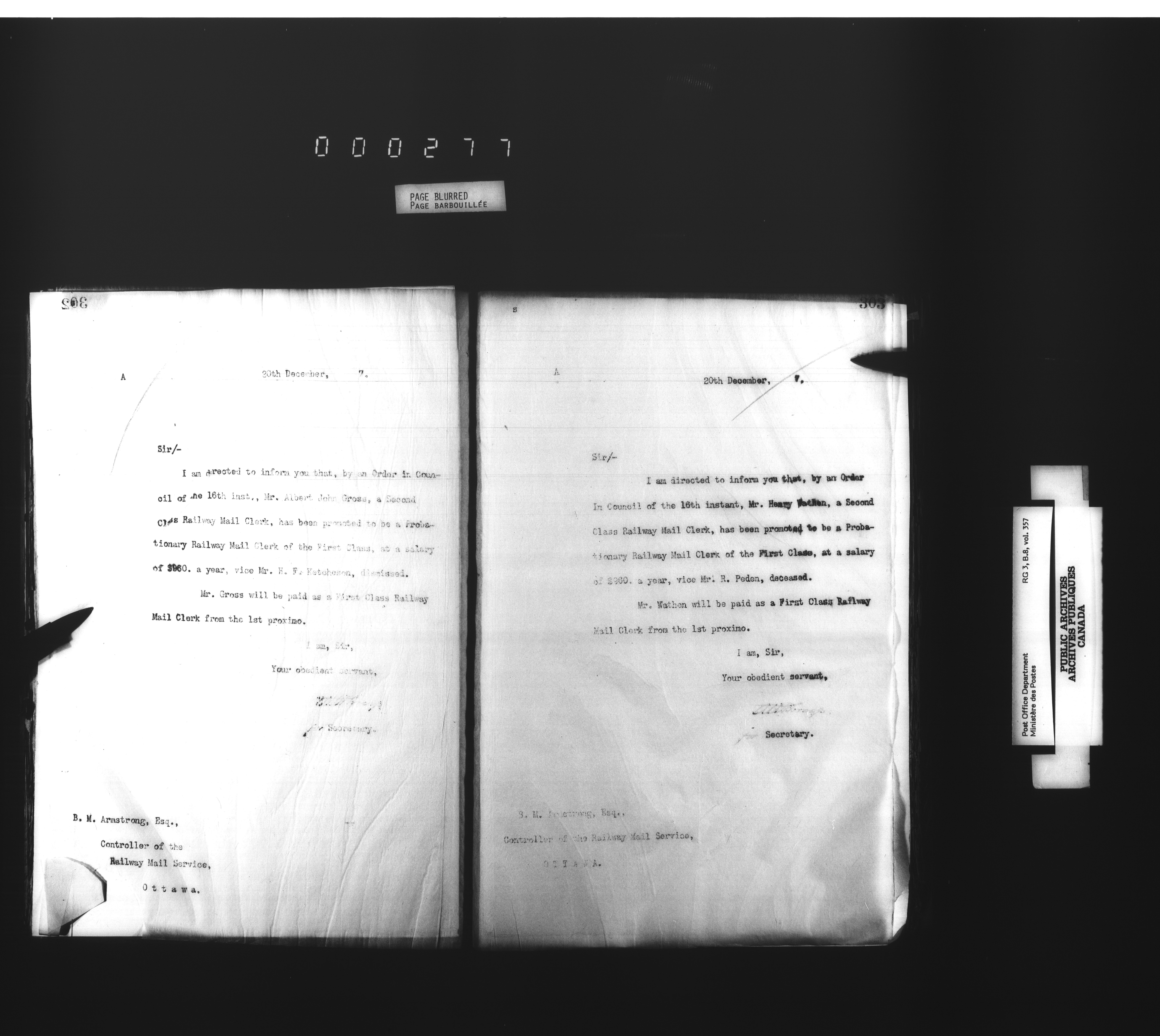 Deputy Postmaster General : Letterbooks related to personnel - 4531