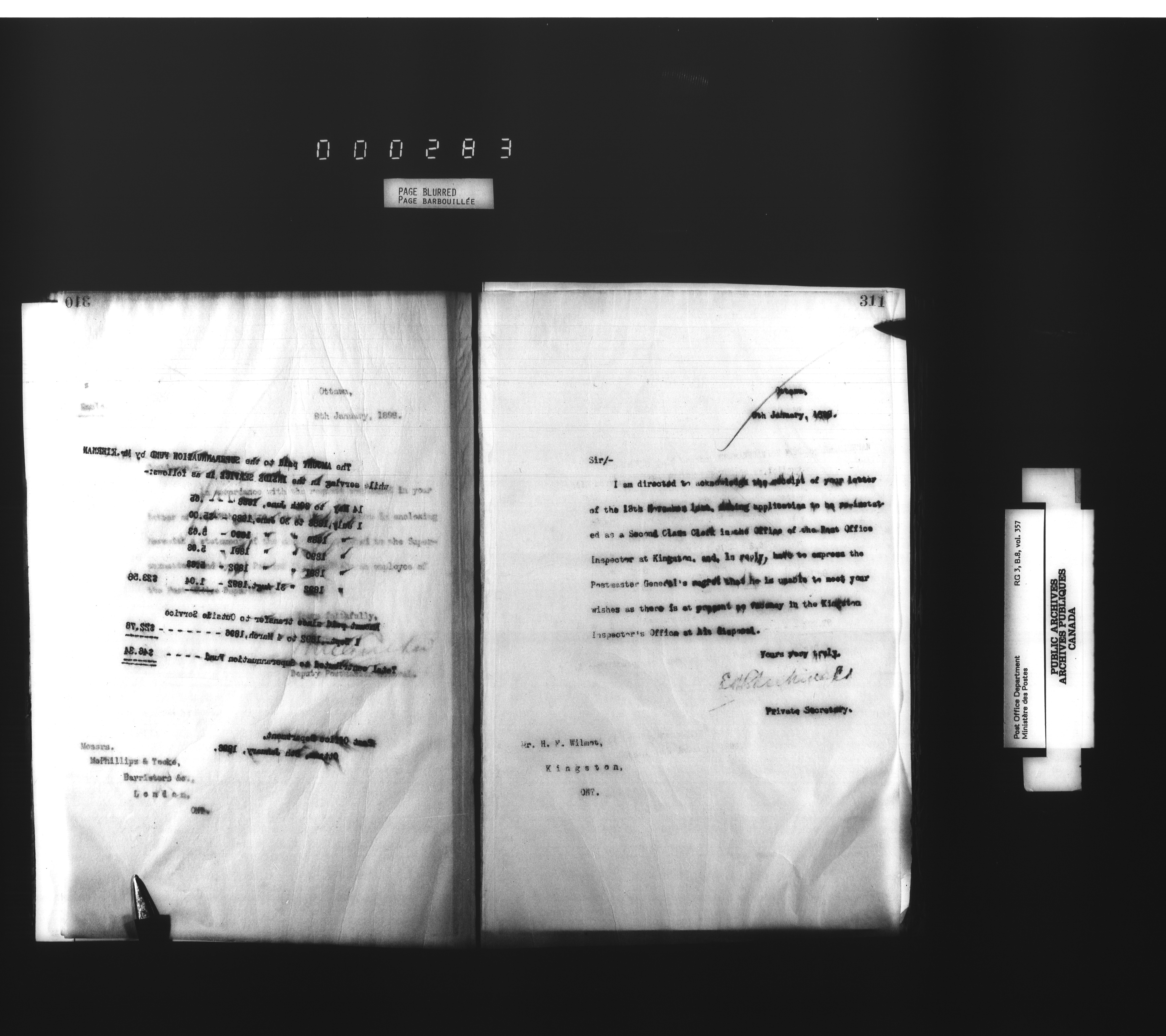 Deputy Postmaster General : Letterbooks related to personnel : T-4531