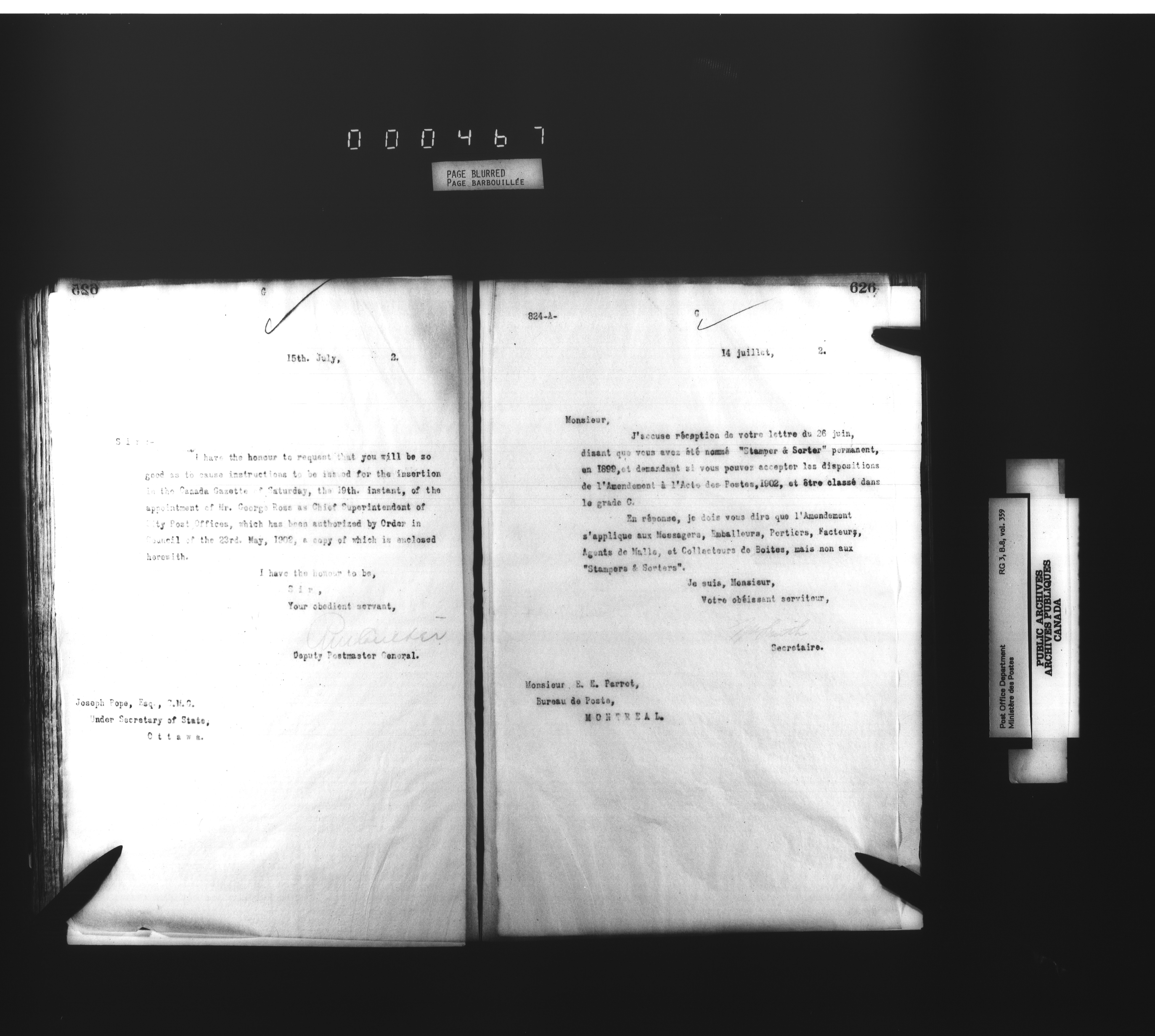 Deputy Postmaster General : Letterbooks related to personnel - 4532