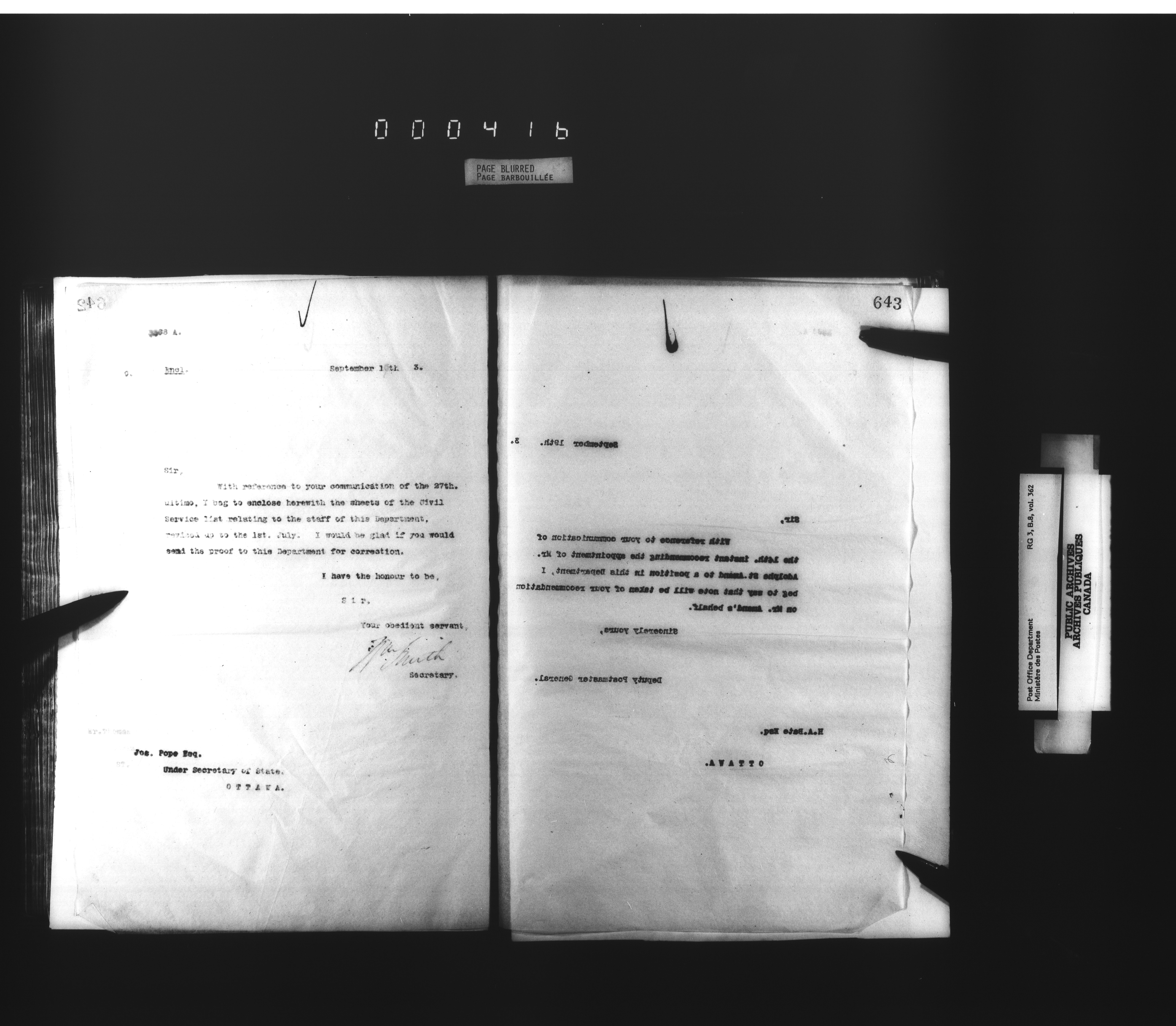 Deputy Postmaster General : Letterbooks related to personnel - 4534