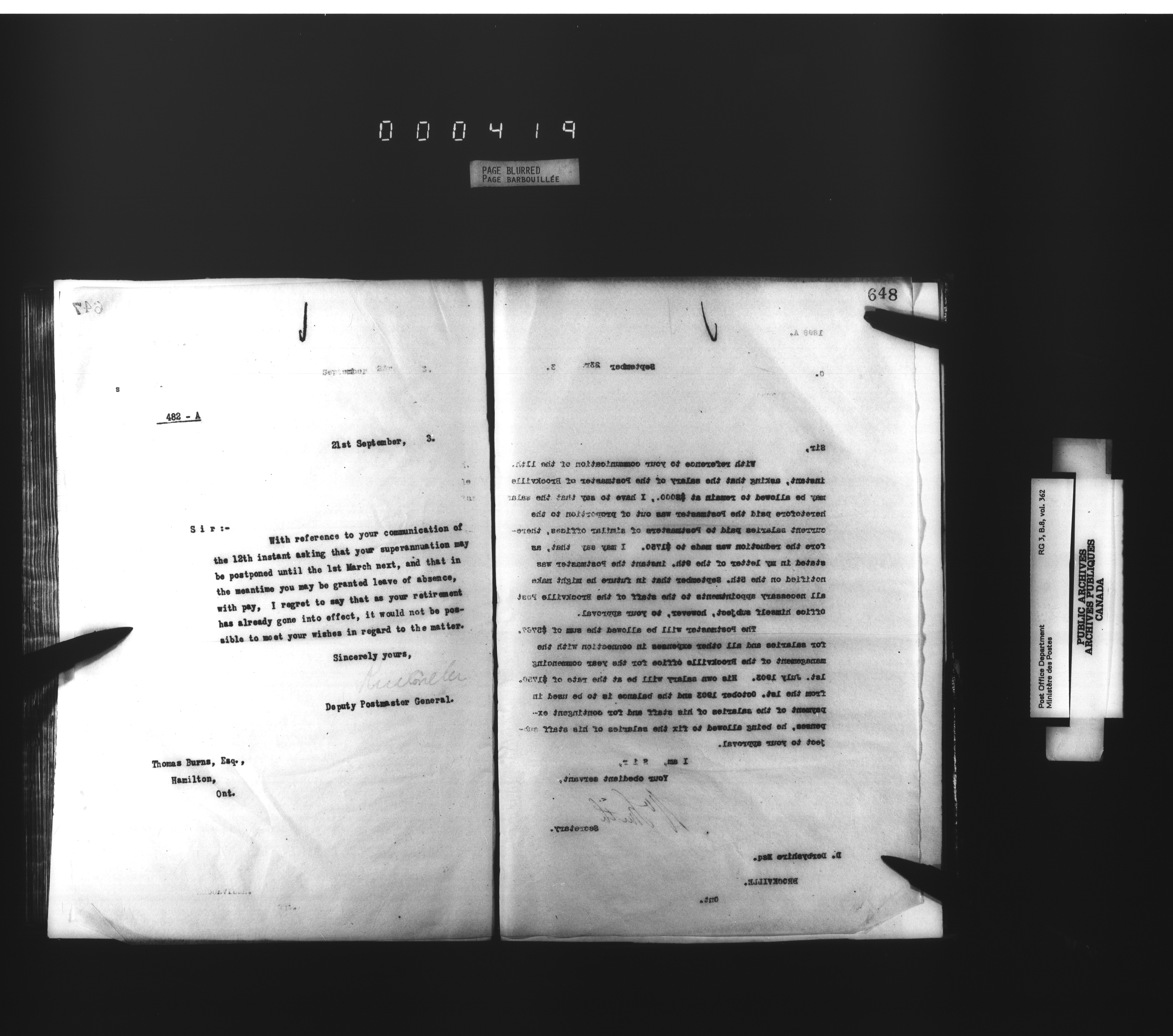 Deputy Postmaster General : Letterbooks related to personnel - 4534