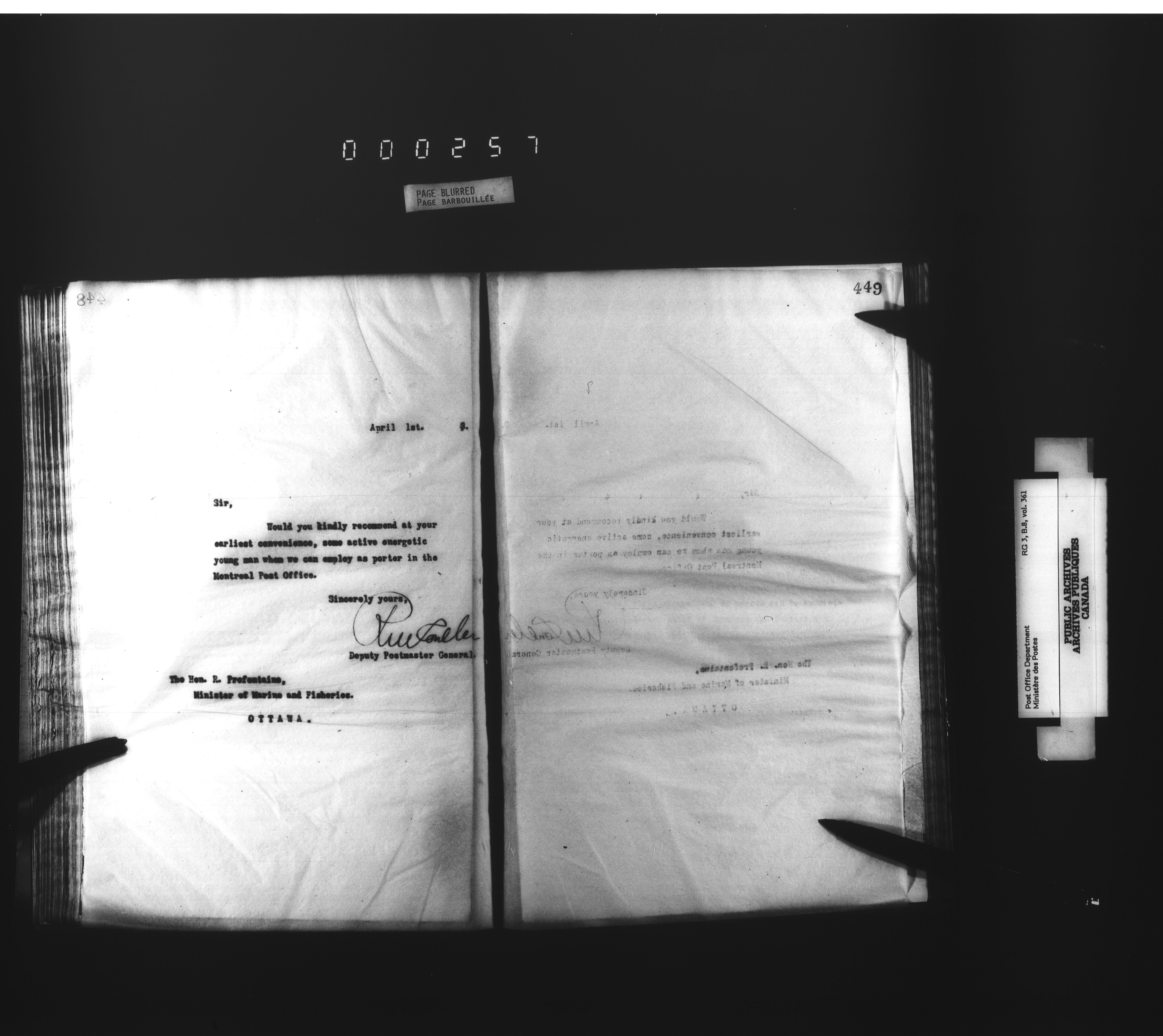 Deputy Postmaster General : Letterbooks related to personnel - 4534